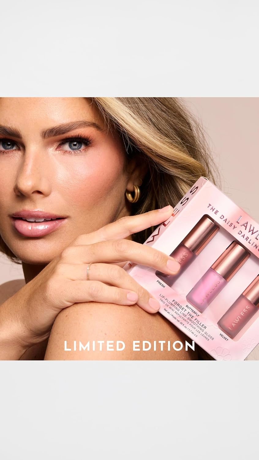 Lawless The Daisy Darlings Mini Trio – Forget The Filler Lip Plumping Line Smoothing Gloss Set – 3 x 0.05 fl. oz – Shades: Presh, Butterfly, Velvet
