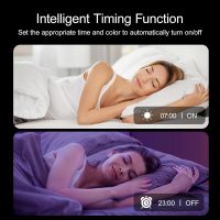 【Intelligent timing function】Set the LED lights to automatically turn on or off at a fixed time through an intelligent application. After the scheduled time, the LED light strip will gradually wake you up with soft light in the morning, accompanying you to sleep in the dark and giving you a sense of security
