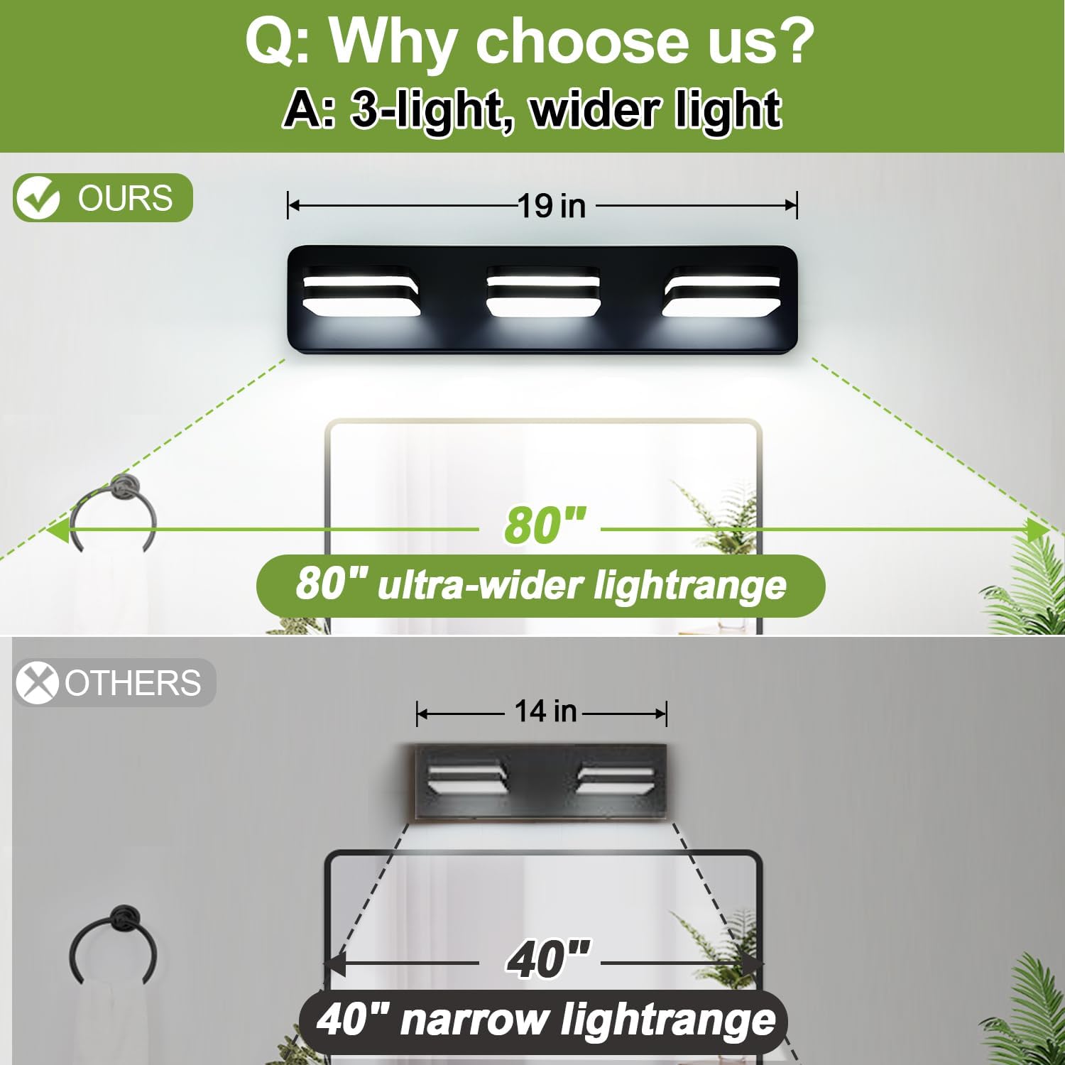 Easy to Install: The bathroom lighting fixtures over mirror feature a simple design and installs in just 15 minutes. Equipped with an LED light source, it is hardwired to fit a standard US backplate, requiring no additional assembly. The fixture mounts above the mirror and is ready to use by connecting to the pre-wired connections and securing it to the wall.