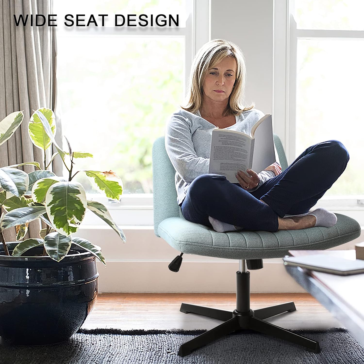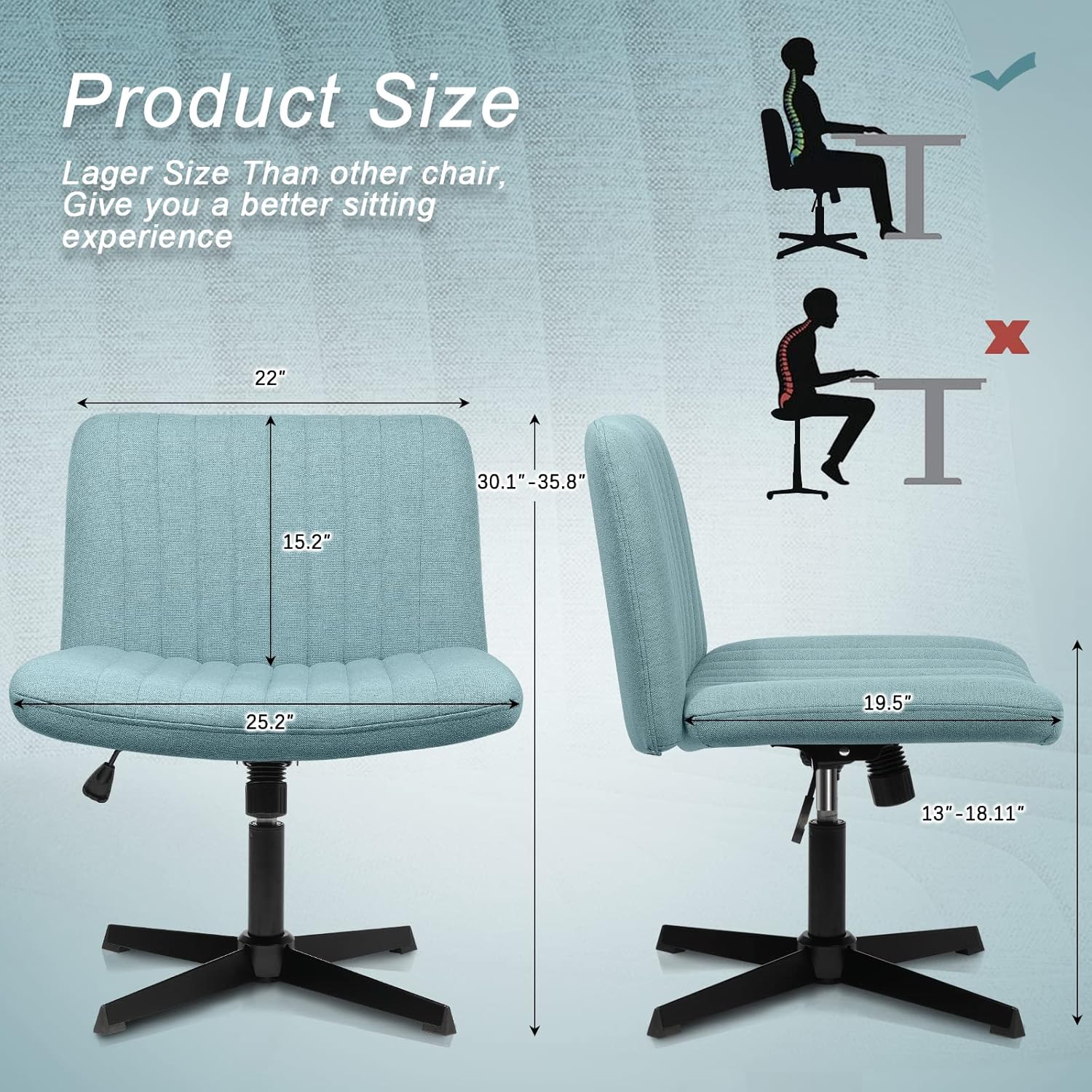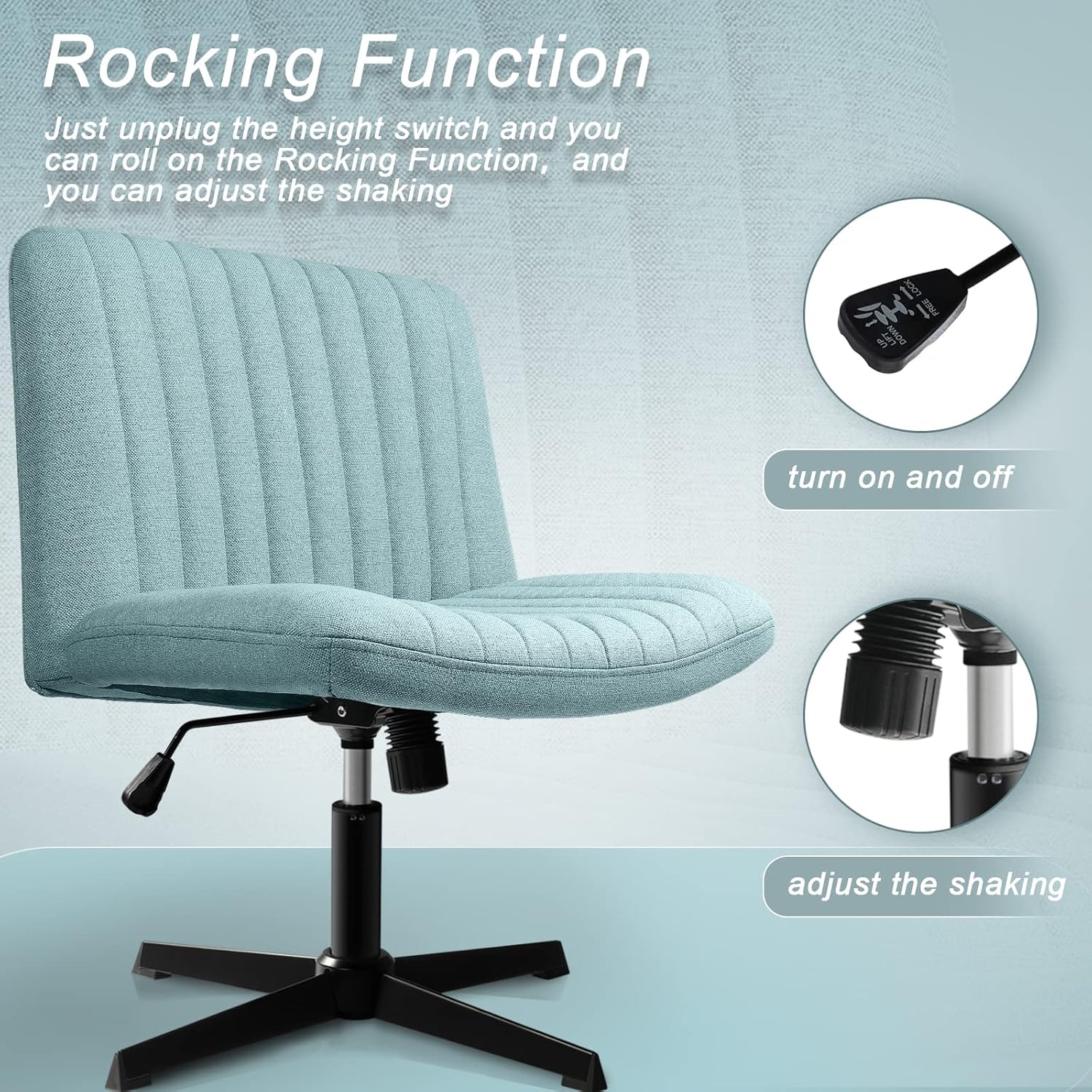 LEMBERI Fabric Padded Desk Chair No Wheels, Armless Wide Swivel Home Office Desk Chair,120°Rocking Mid Back Ergonomic Computer Task Vanity Chair for Office, Home, Make Up,Small Space, Bed Room