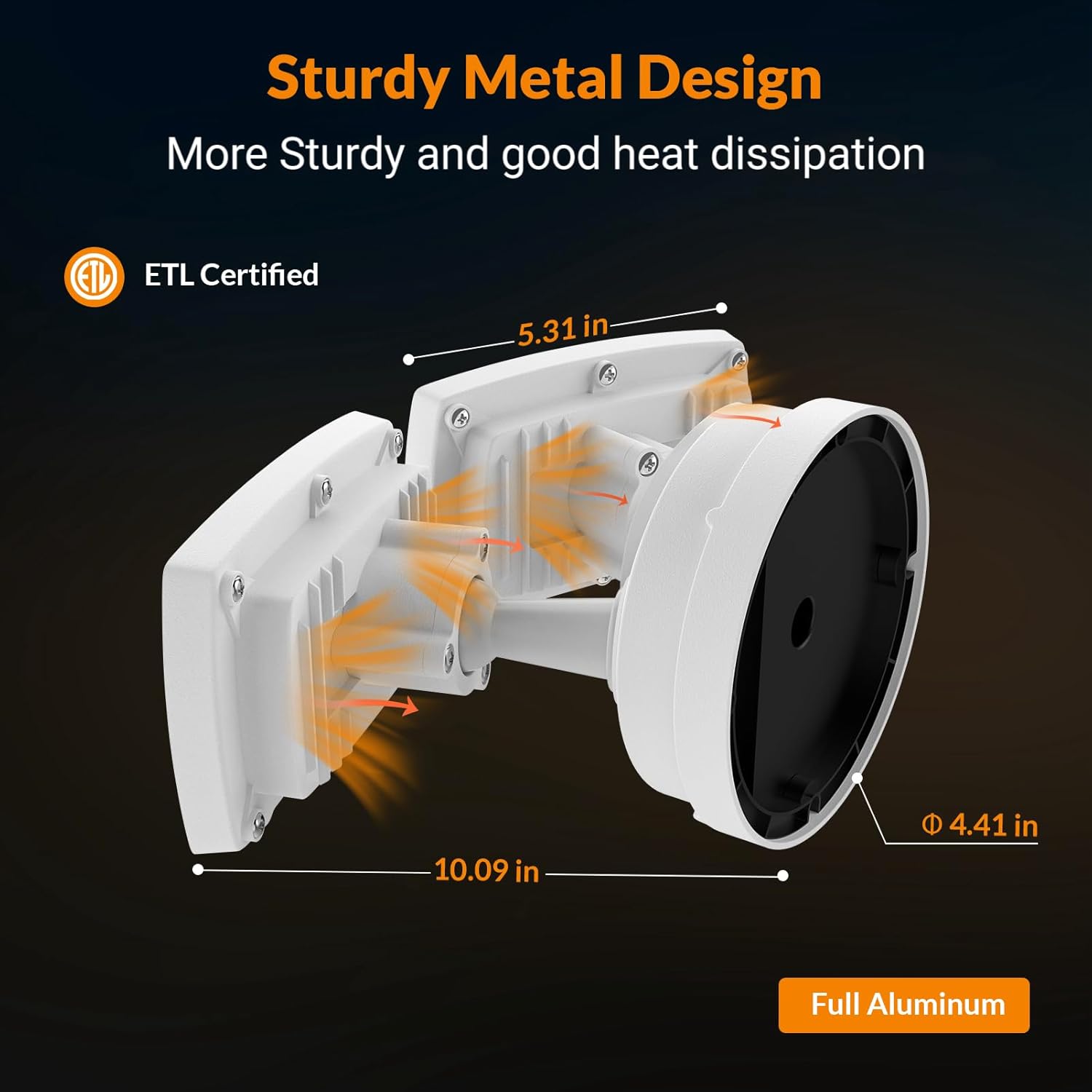 LEPOWER 3000LM Flood Light Outdoor, Switch Controlled LED Security Light, 28W Exterior Lights with 2 Adjustable Heads, IP65 Waterproof, 5500K Wall Mount Exterior LED Flood Light for Garage, Yard White