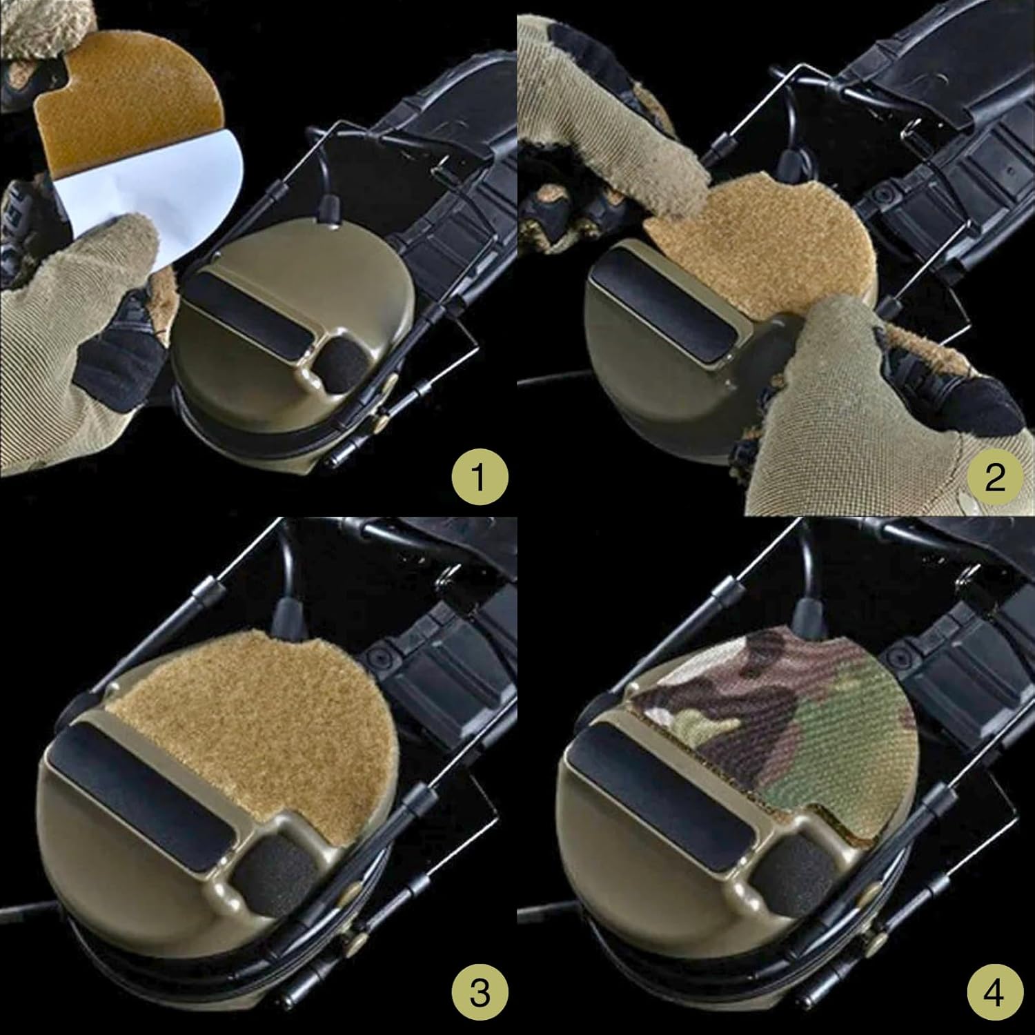 HEADSET MOD KIT: This tactical headset hook loop patch is customized cut to fit the shape of the ear cup shells of Peltor Comtac II/III/V/VI models, the base of the loop patch uses hot melt adhesive as a bonding, and the hook patch is made of 1000 Denier abrasion-resistant camouflage nylon fabric.