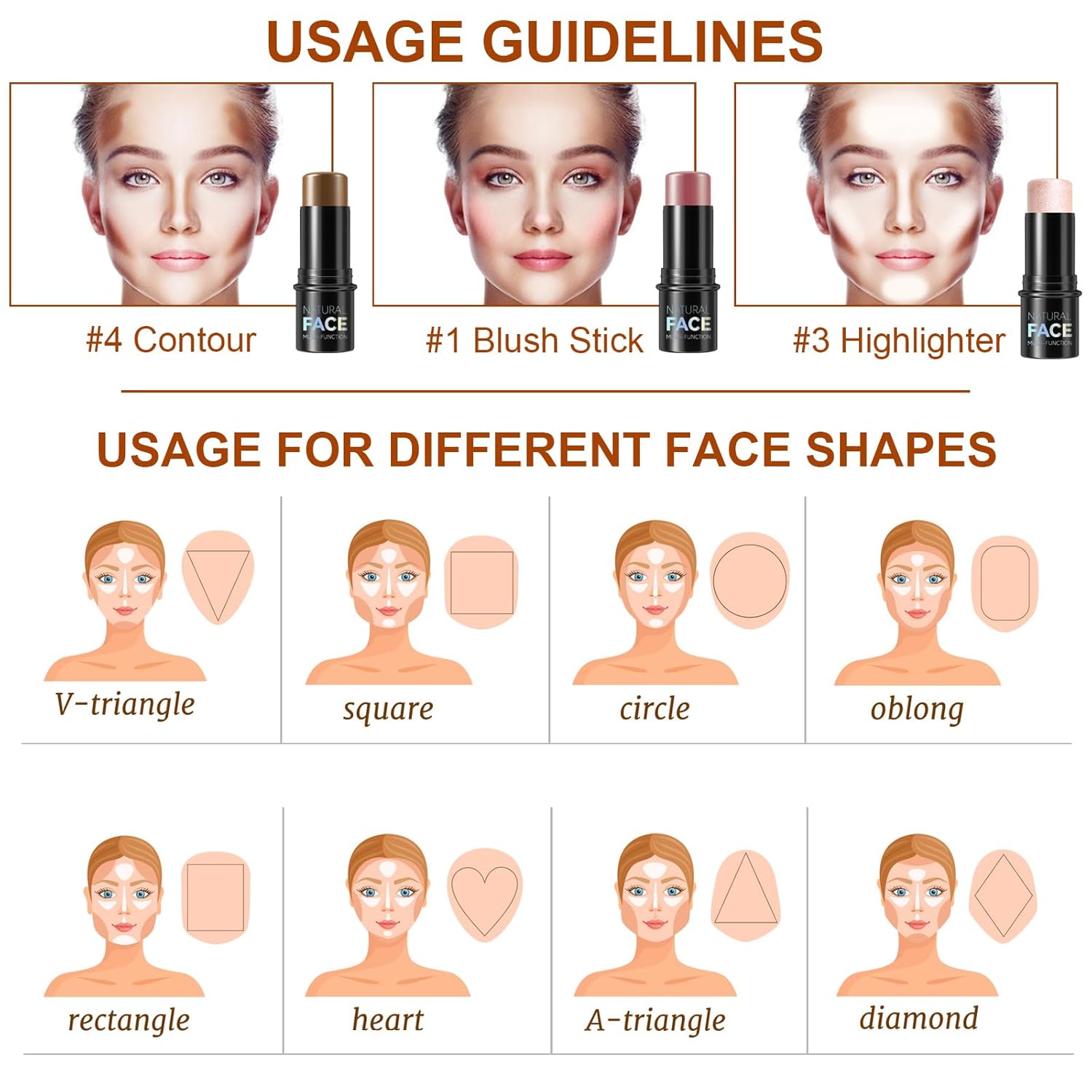 Lezero 3Pcs Contour Stick Makeup Kit, Shades with Highlighter, Blush and Bronzer Stick for Sculpt the Face and All Skin Type, Long Lasting, Smooth, Dewy & Matte Finish, LIGHT MEDIUM