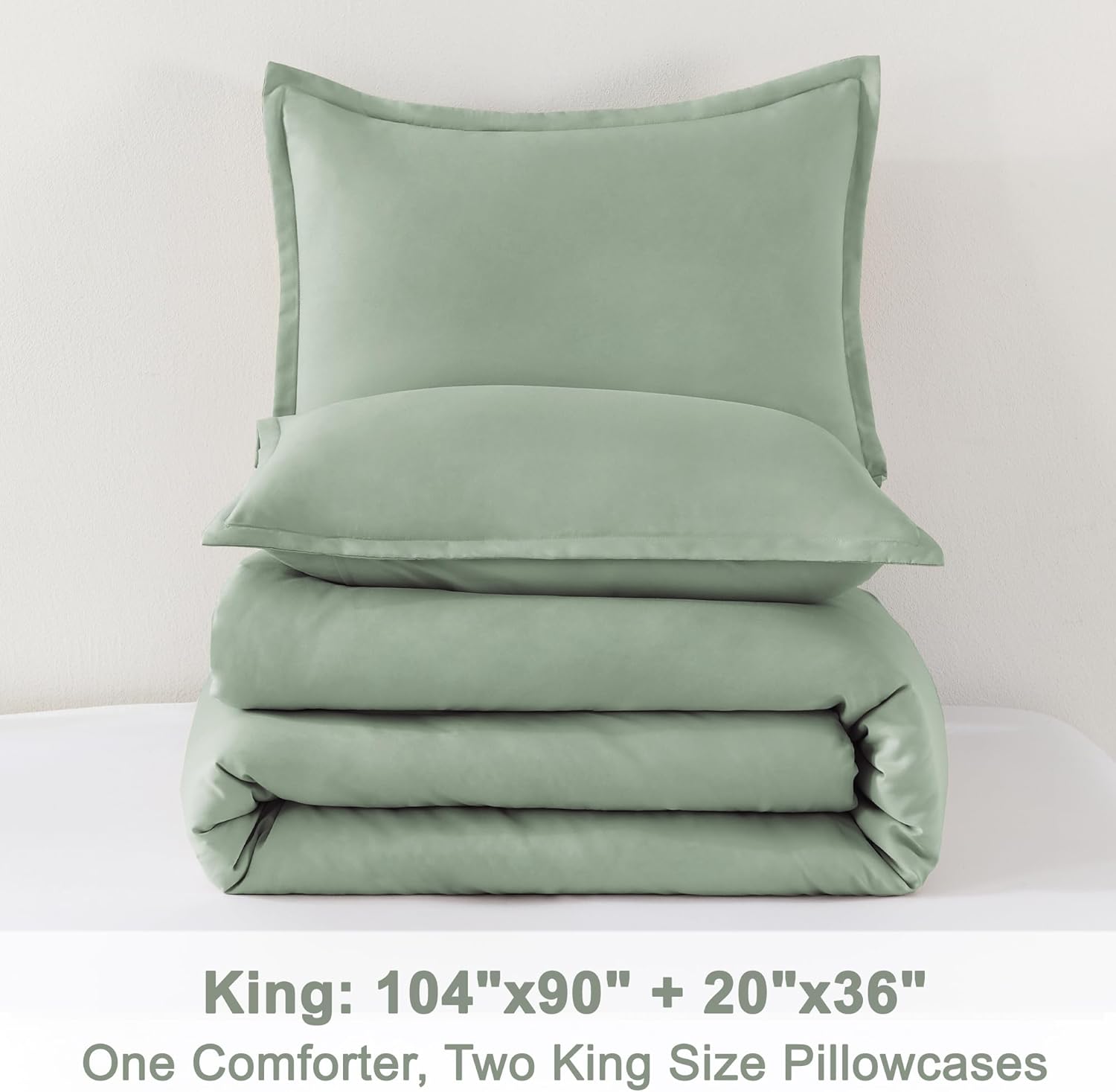 What’s included: King comforter set includes 1 comforter (104×90 inches), 2 pillowcases (20×36 inches). Since the comforter comes in vacuum-sealed packaging, it is highly recommended to wash it and tumble dry low temperature to puff the comforter before first use. Or you can expose it to sunlight and tap gently, then it will re-fluffed nicely after hours.