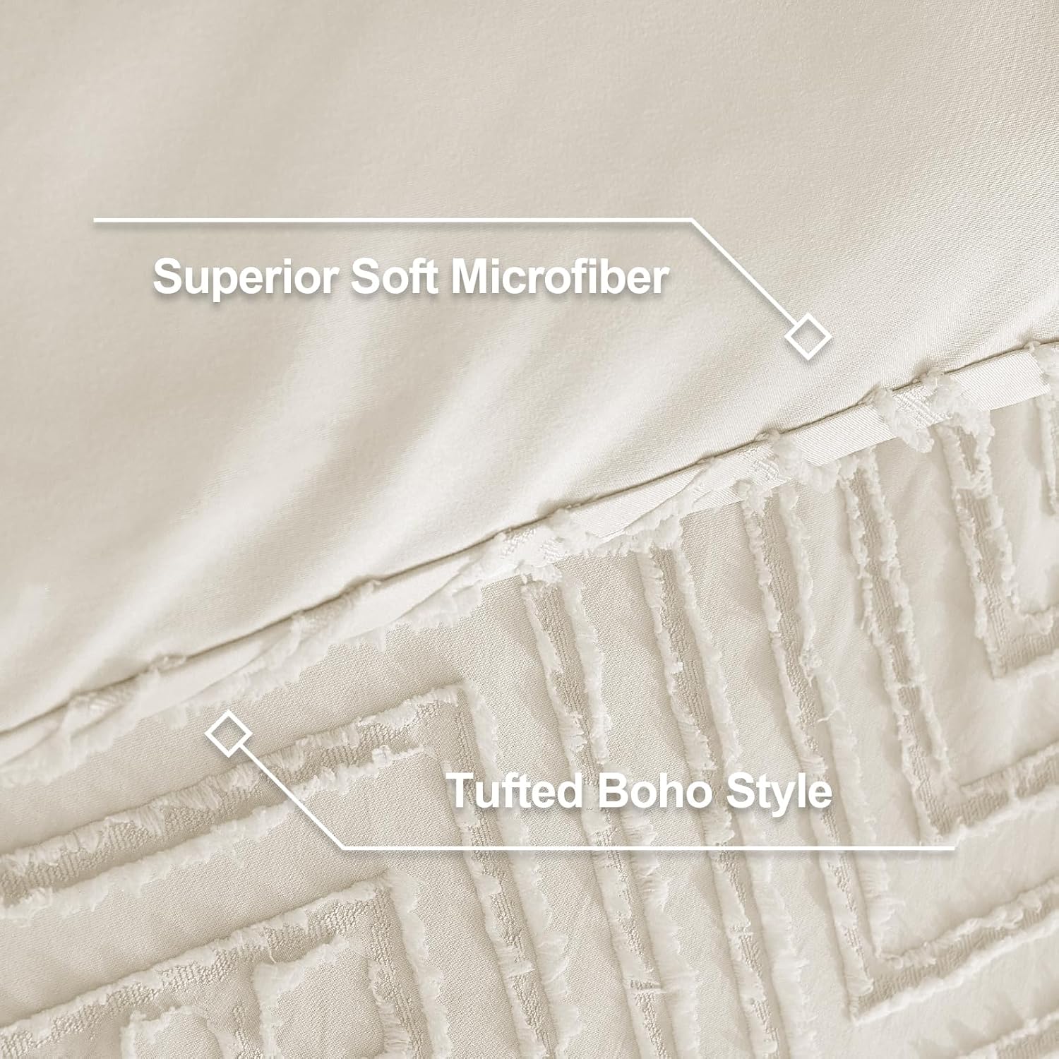【Superior Fabric】Litanika beige comforter features a double-sided design. The front has tufting elements embroidered on it, while the back is made of soft, durable microfiber. This comforter envelops you in comfort, and its exceptional softness and breathability guarantee a peaceful sleep each and every night.