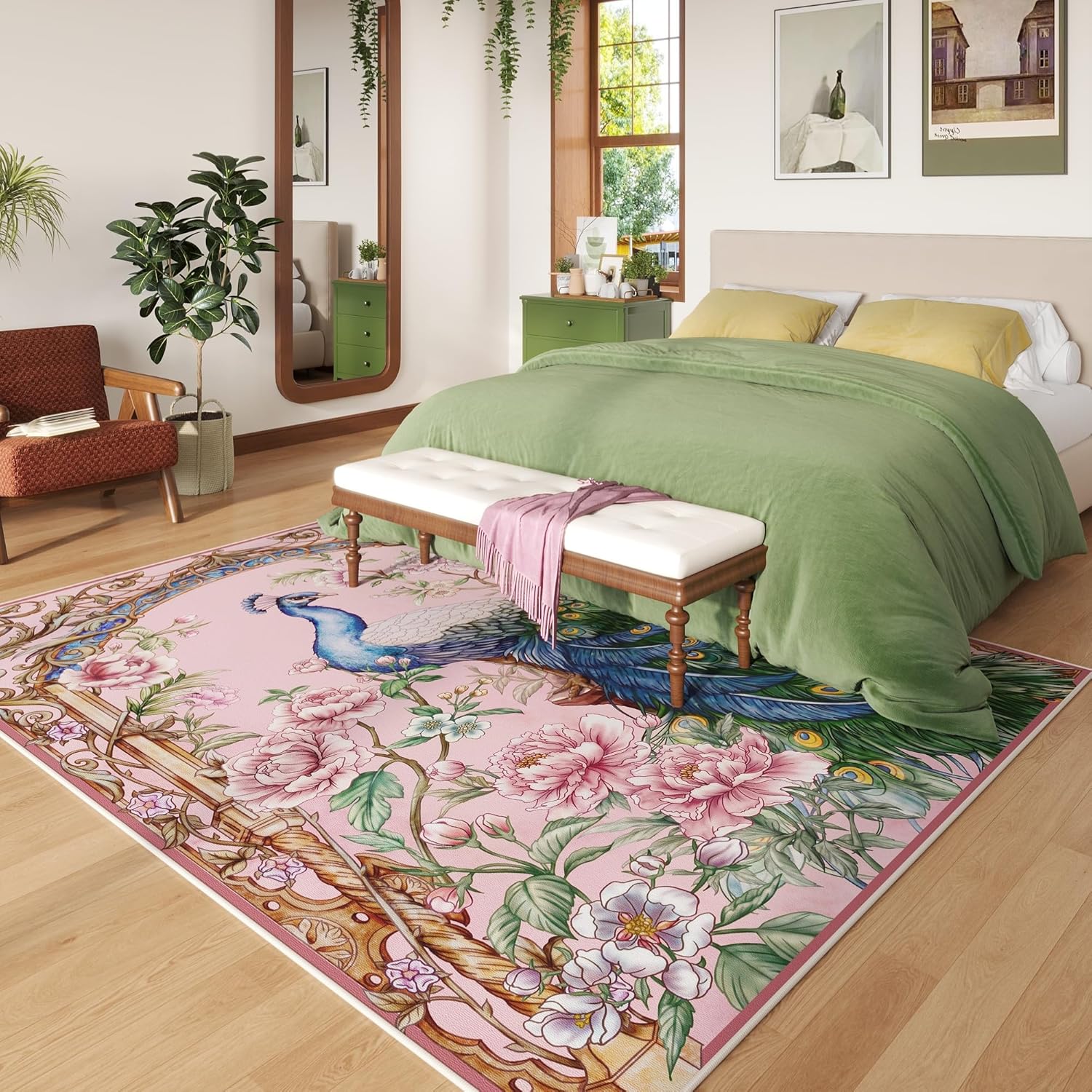 Peacock Design—This peacock rug woven by machine, The vibrant-inspired design is digitally printed which details can’t be replicated by hand. Vibrant magpie carpet patterns Intriguing adorn the spaces in your home, including the living room, bedroom, dining room, entryway, children’s playroom, home office, kitchen, and more.