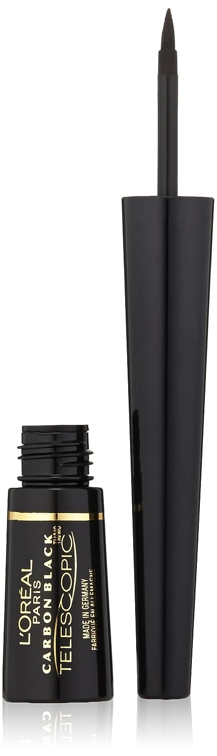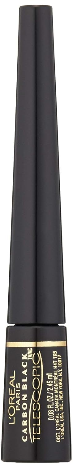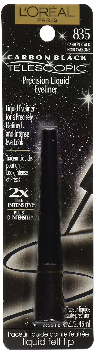 L’Oral Paris Telescopic Precision Liquid Eyeliner is the perfect companion to Telescopic Mascara for a precisely defined and intense eye look. The felt tip liquid eyeliner is angled to allow you to quickly draw the most accurate line for long lasting wear. • Slanted felt tip precision liquid eyeliner • Smudge proof eyeliner • Intense Color, dramatic definition • Long lasting eyeliner Application tip: shake well before each use. Glide tip along the outer lash line, pressing lightly for a thin line and increasing pressure for a thicker line. Replace tip in ink well to remoisten if desired. Eye cosmetics in a scratched, infected or irritated eye and scratches from cosmetic eye applicators can lead to eye damage, and in extreme cases, even blindness. If your eye is scratched, stop using all eye cosmetics and go to an ophthalmologist immediately. Never apply this product in a moving vehicle.