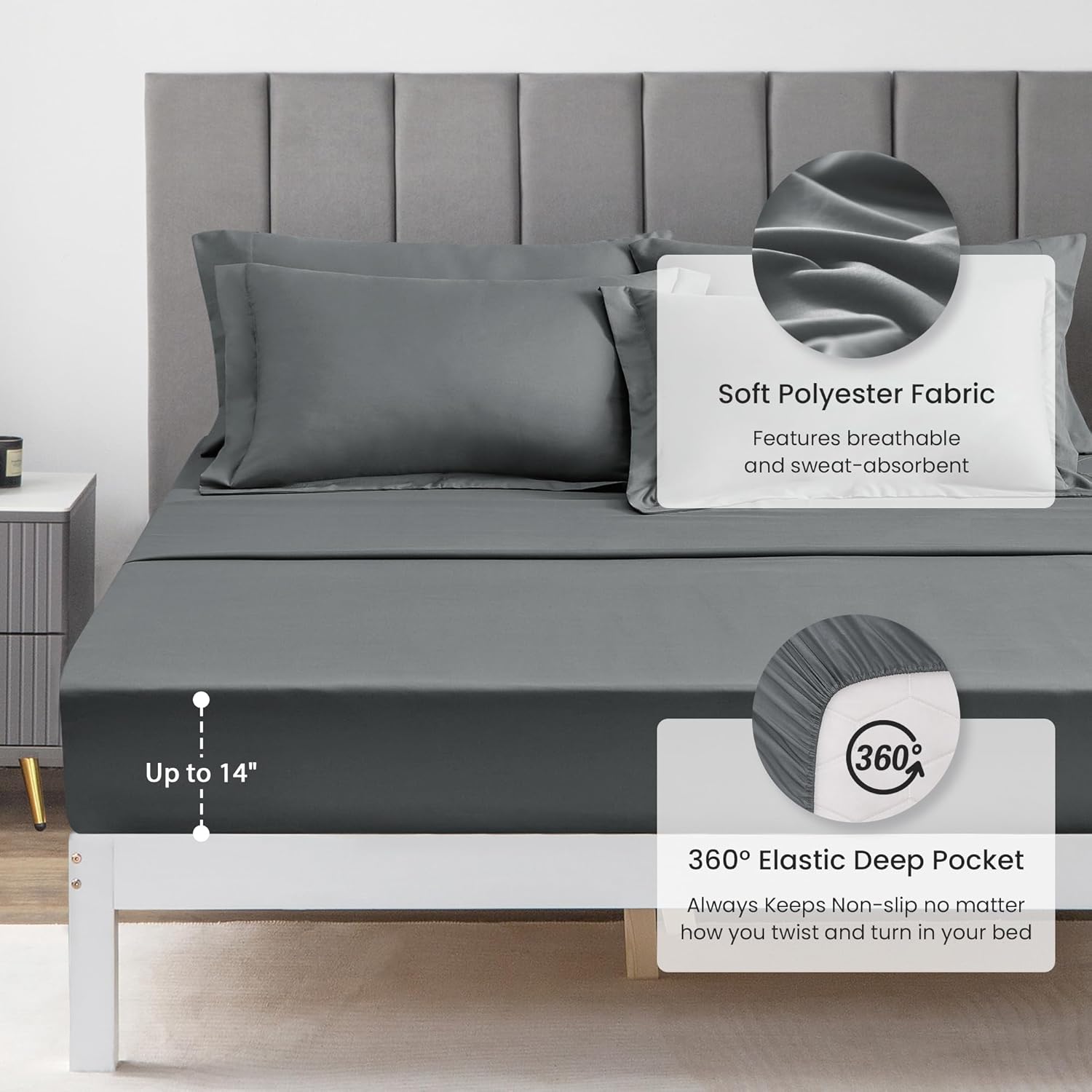 Unique Design – The box stitching could prevent the comforter filling from shifting and bunching no matter how you twist and turn in your bed. This design makes this comforter last longer without having to change it frequently. Our fitted sheet has a elastic 14” deep pocket which will fit almost any mattress. The envelope closure pillowcases to keep your pillows secure and will not fall down in sleep.