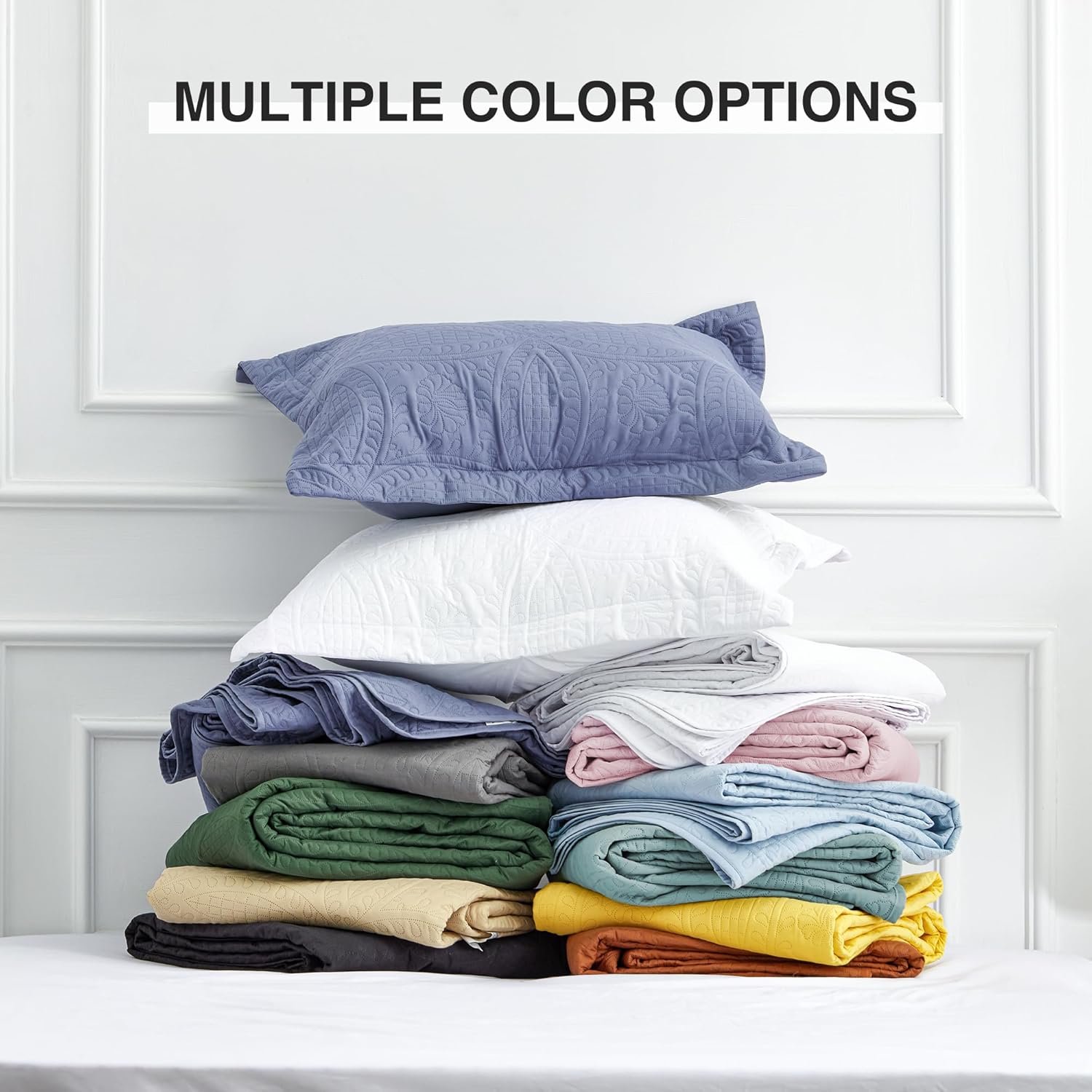 PRODUCT FEATURES – Full/Queen size (90″x96″) 3 piece quilt set comes with a quilt and two shams (20″x26″). Super soft microfiber stitched in a mutilayered technique to create a lightweight, durable quilts for year-round comforts. Solid color allows for easy matching with home decor and bedspreads.