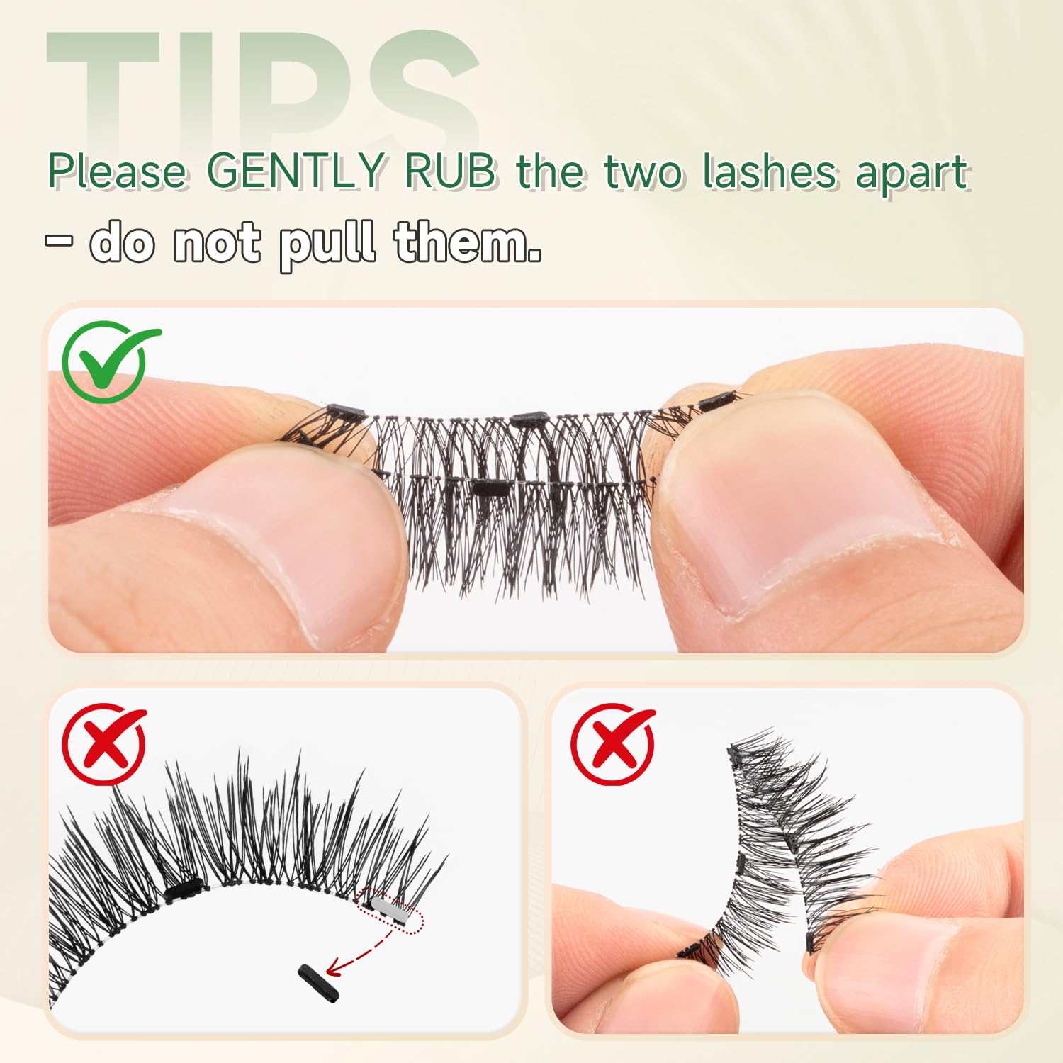 Do not pull them apart forcefully — this can damage the lashes. Always separate them gently by rubbing.