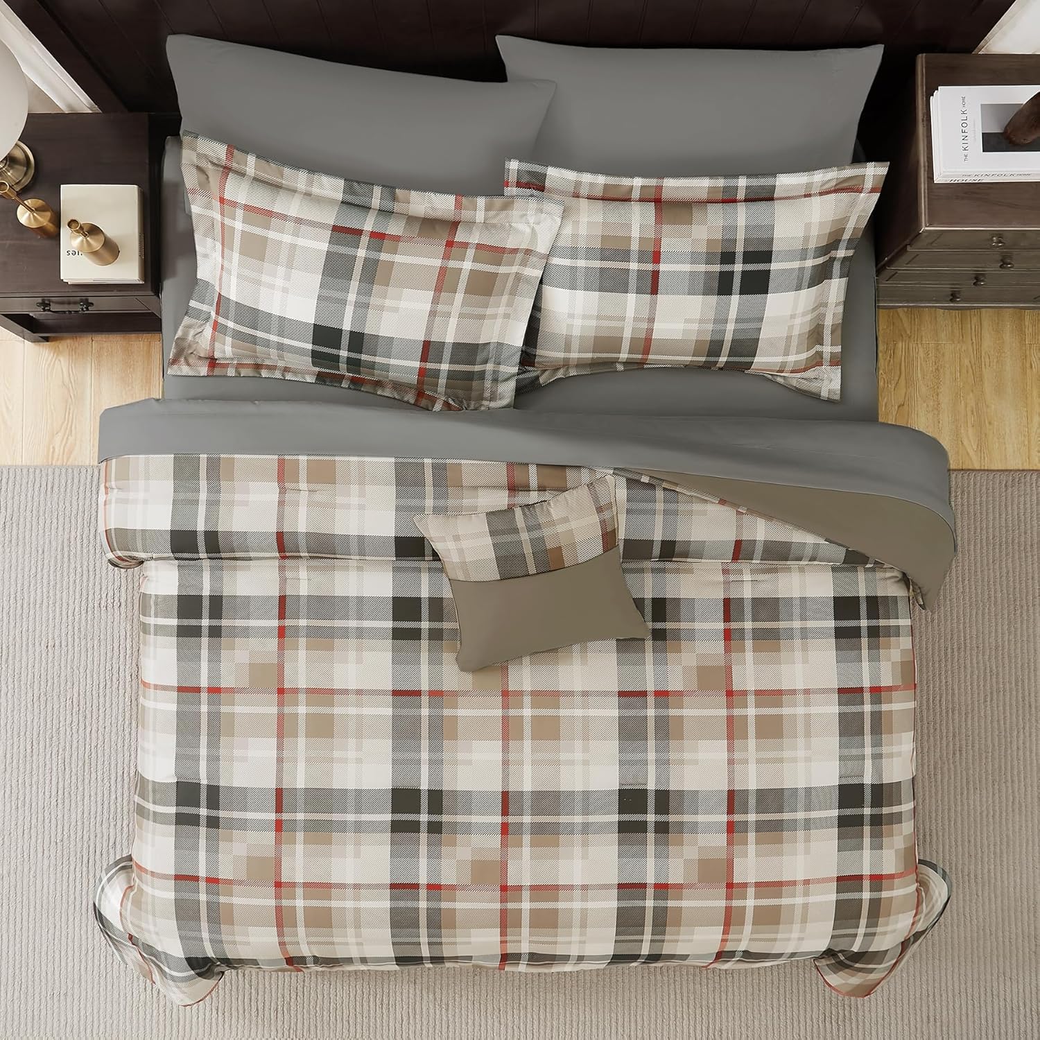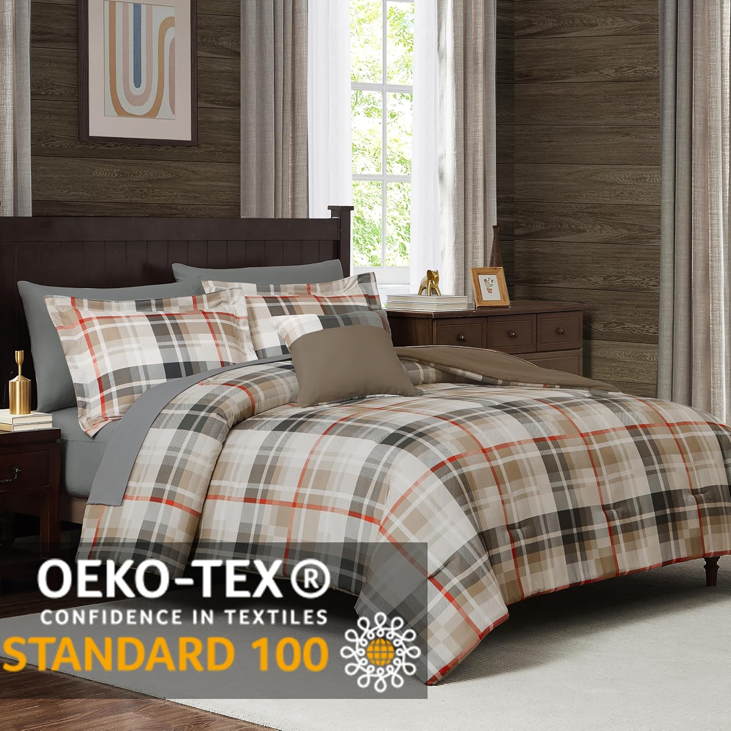 Plaid Design: Upgrade your bedroom decoration with our plaid comforter set queen, endows it with classic nobleness and coziness. Fitted sheet is designed with a storage pocket, which is convenient and practical.(NO DECO PILLOW)
