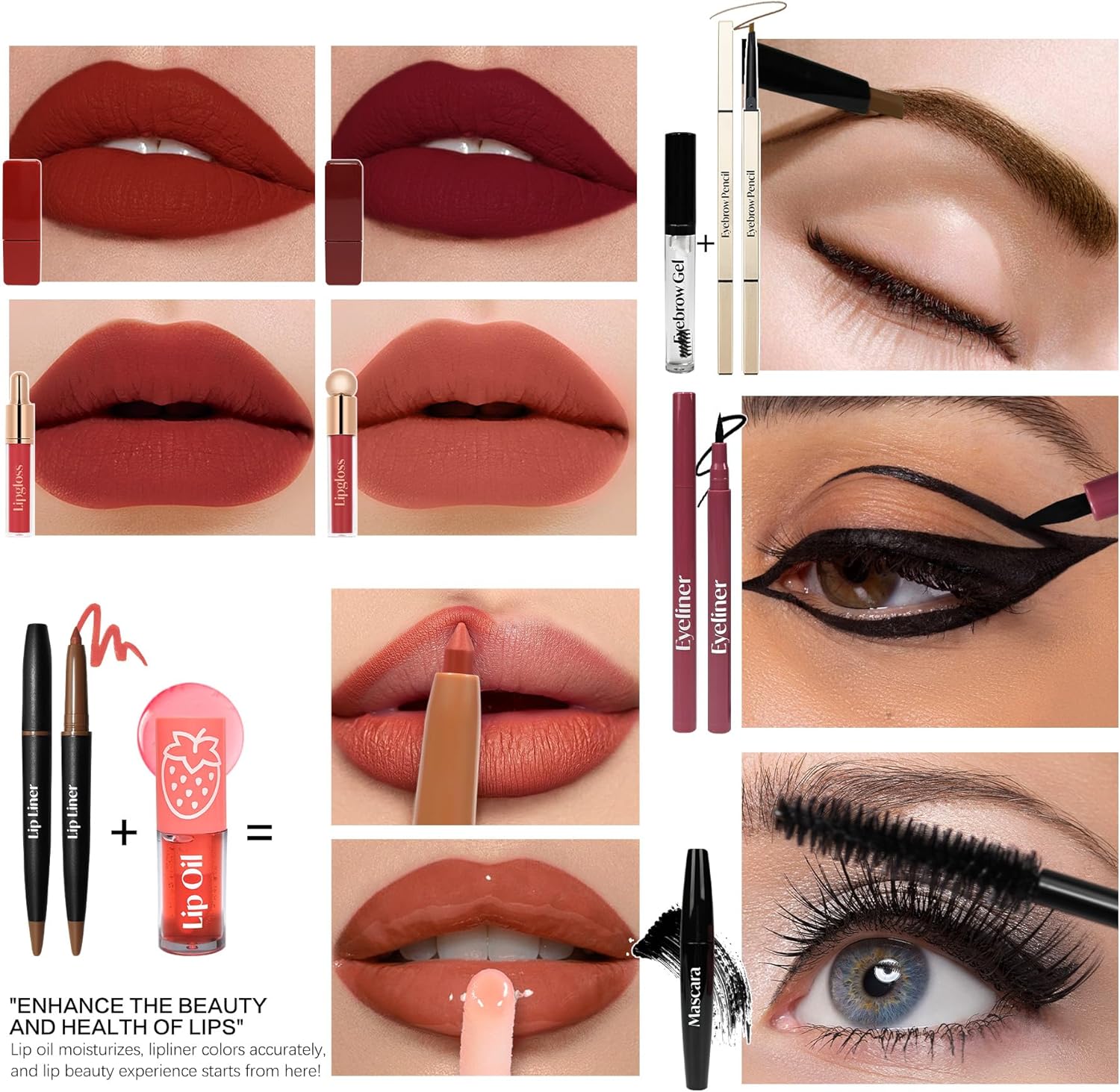 [Super Value Pack – 24PCS Make up advent Calendar] Our Make up set with 24 PCS surprise for every day. The variety available is perfect, lots of nice makeup for the holidays in every day, inclued eyeshdow x 2,matte lipstick x 2,lip liner x 2,blush x 2,contour x 1, highlighter x 1,eyebrow pencil x 2,eyebrow gel x 1,mascara x 1, makeup sponge x1,lipgloss x 2,eyeliner x 1,hair tie x 1, lip oil x 1, makeup pad x 1, compact mirror x1,brush x 2.This Makeup Set for Teen Girls and Women is neatly packaged in individually numbered gift boxes.