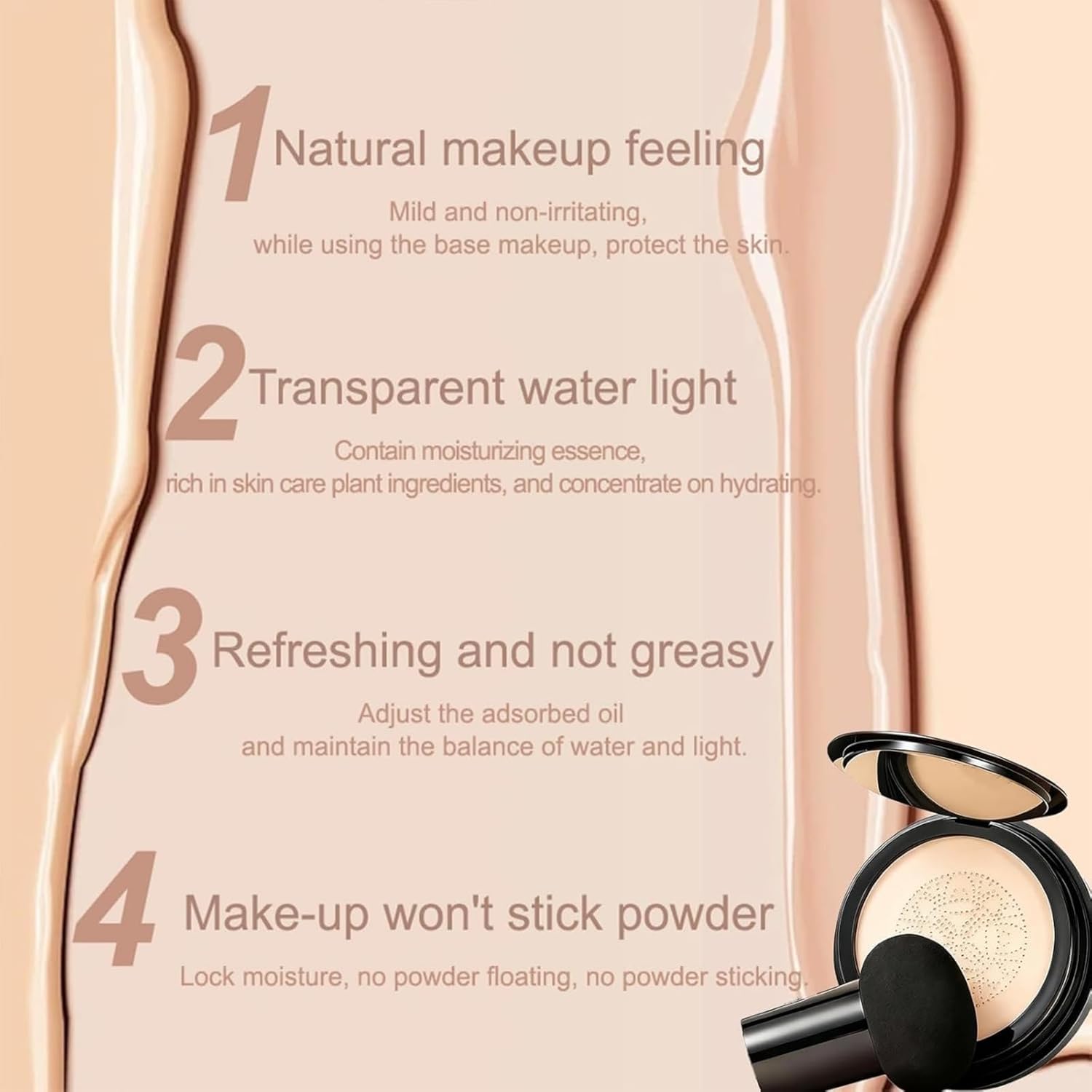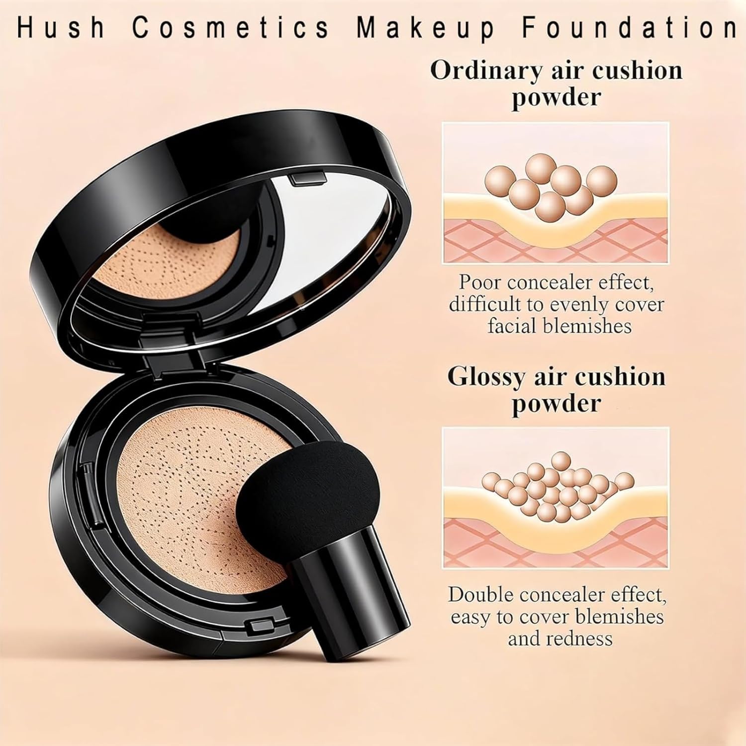 Makeup Foundation for Older Women, Hush Cosmetics Glow foundation, Moisturizing Concealer Brighten Long-Lasting, Mushroom Head Air Cushion CC Cream (Nature)
