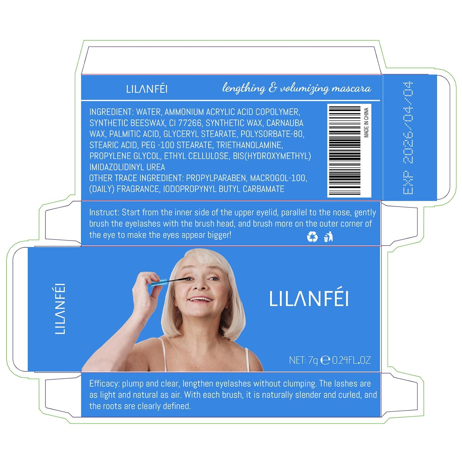Mascara for Older Women 60 Plus, Mascara for Seniors with Thinning Lashes, Hypoallergenic Sensitive Eyes, Black Volume and Length, Waterproof Smudge Proof(1pc)
