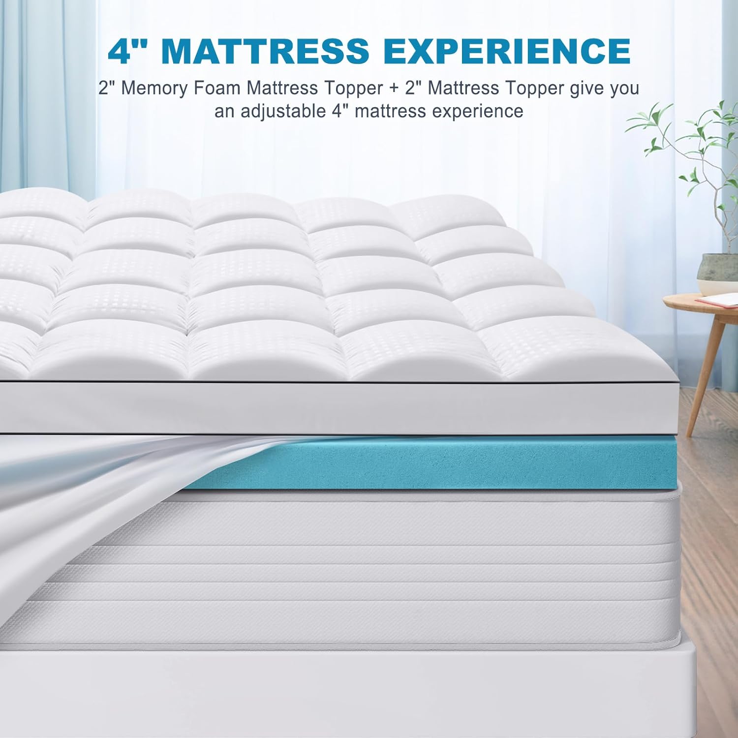 MASVIS King Size Dual Layer 4 Inch Memory Foam Mattress Topper, 2 Inch Gel Memory Foam and 2 Inch Cooling Pillow Top Mattress Pad Cover for Back Pain, Medium Support