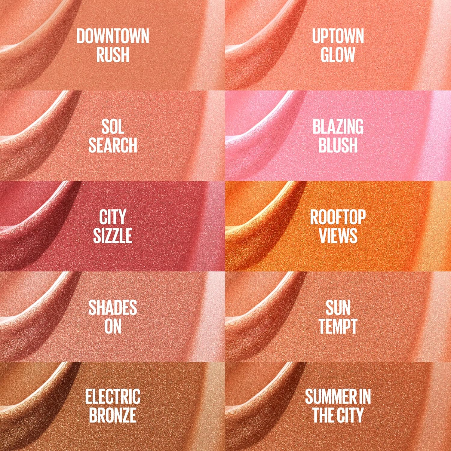 Instant Glowy, Sunkissed Cheeks: New Sunkisser Liquid Blush delivers blush and bronzer color with up to 12HR wear. This liquid blush for cheeks is available in 10 multi-use face makeup shades to deliver blushing color & bronzing warmth