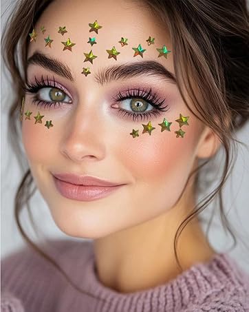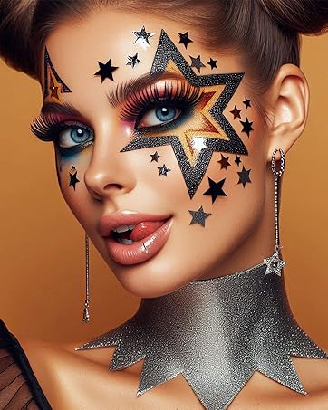 Elevate your look with dazzling gold star and mermaid face gems! Perfect for nightclubs, music festivals, weddings, or Halloween.