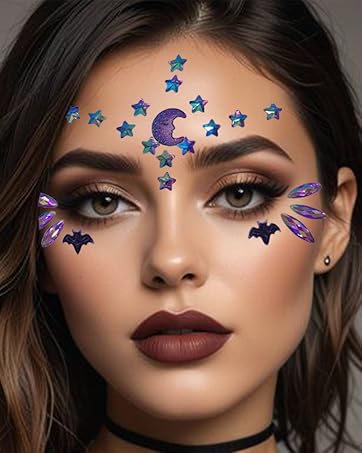 Transform into a celestial queen with edgy black star face jewels! Perfect for Halloween, raves, nightclubs, or music festivals.