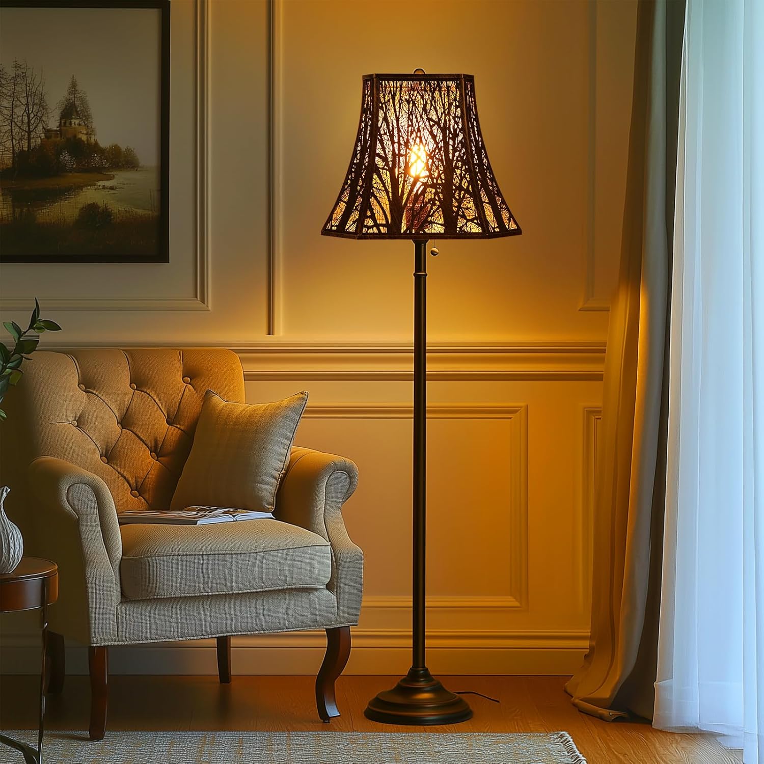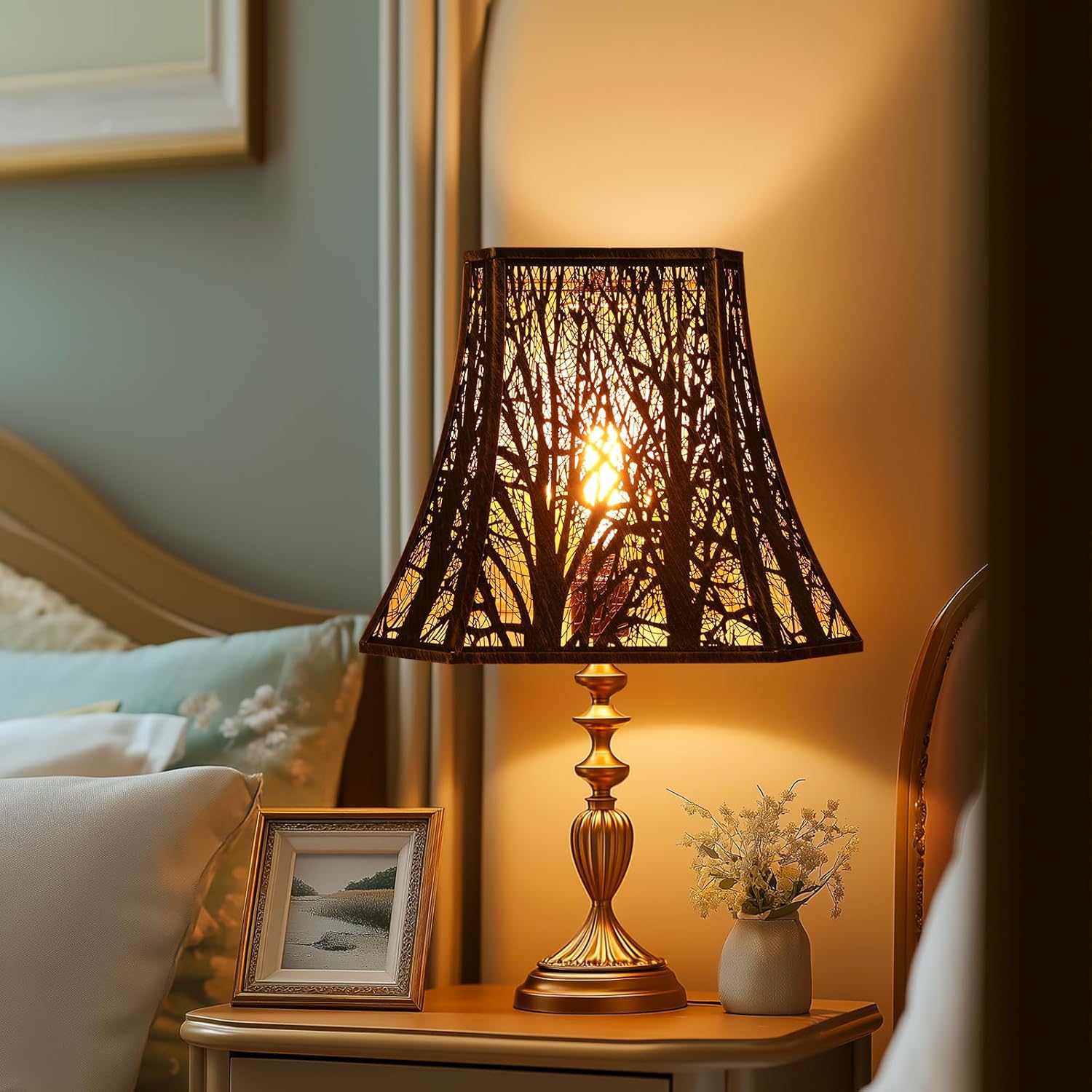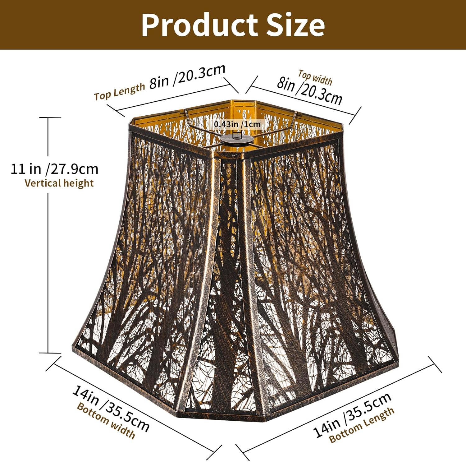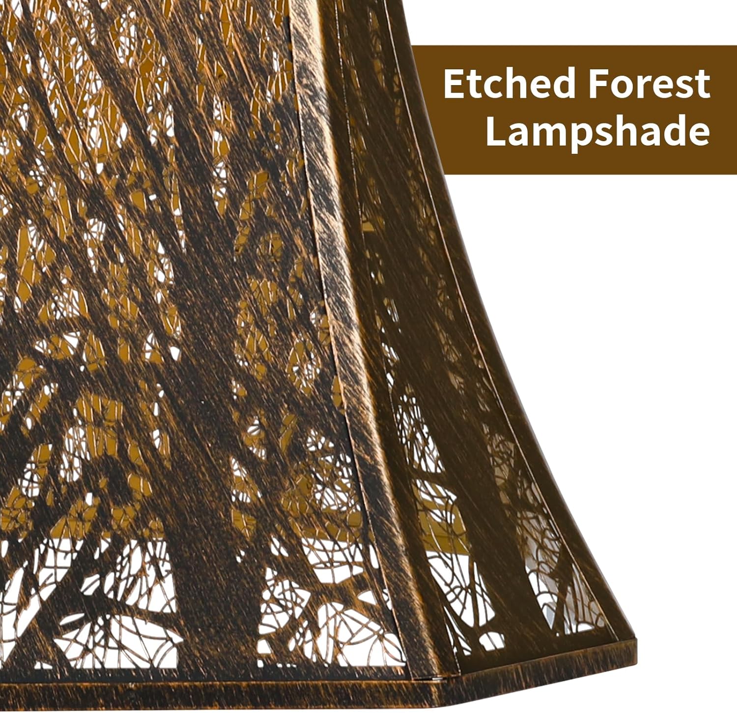 【Ecthed Forest Lampshade】The metal lamp shades are made of durable iron (Bronze and gold rust proof coating) with tree pattern, looking unique and vintage in your home, which delicate froest reflection after lighting up gives you unexpected visual effect.