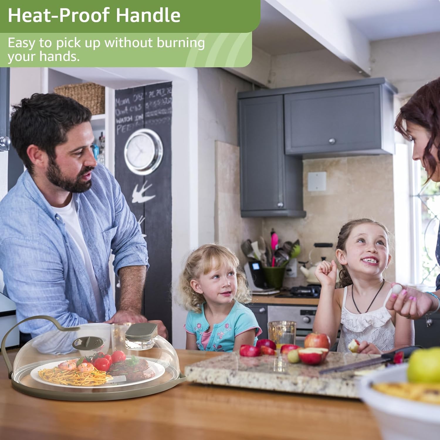 Microwave Splatter Cover with Water Steamer for Food – 10 Inch Steam Microwave Splatter Guard with Handle Plate Covers for Heating Food Splash Oven Lid with Built in Steamer