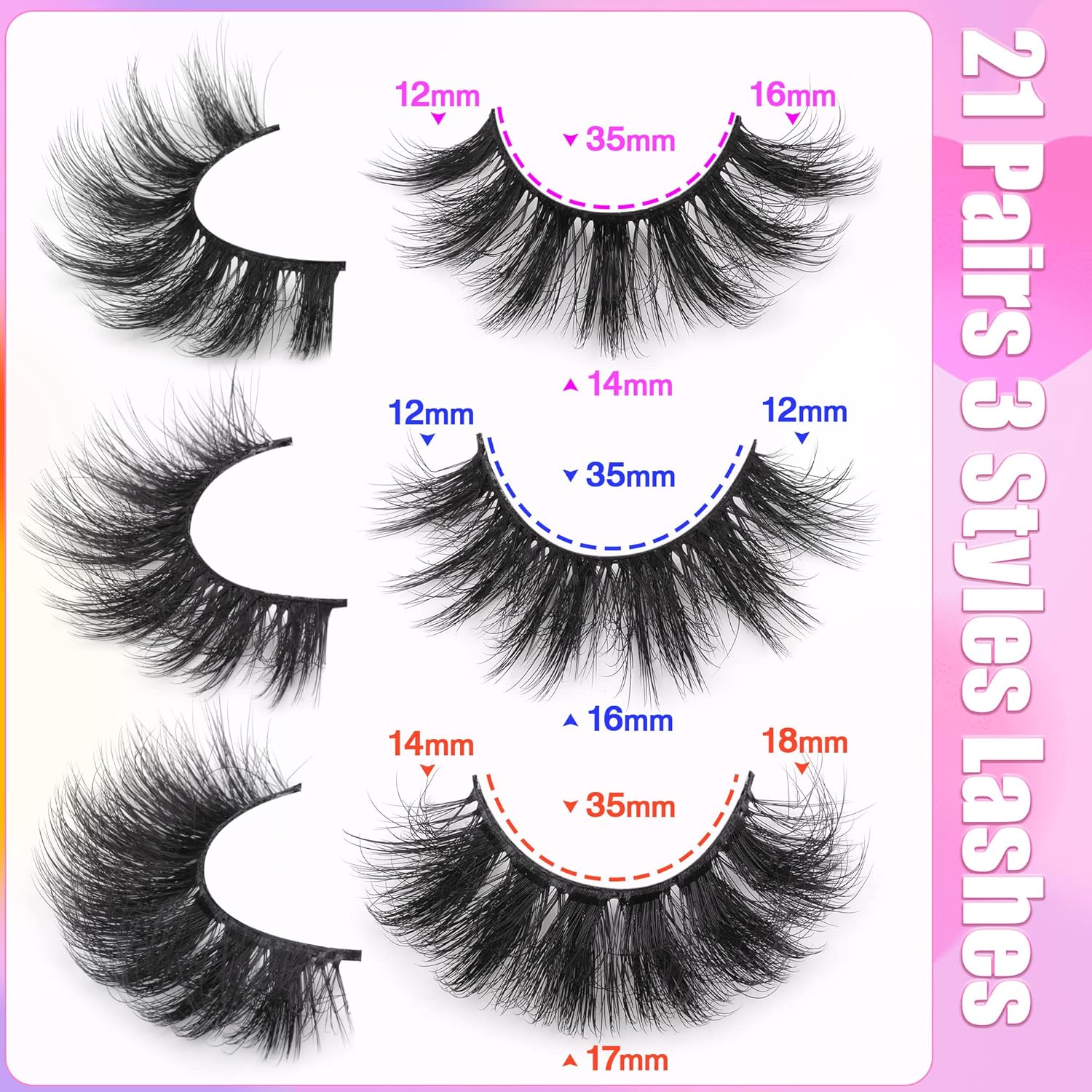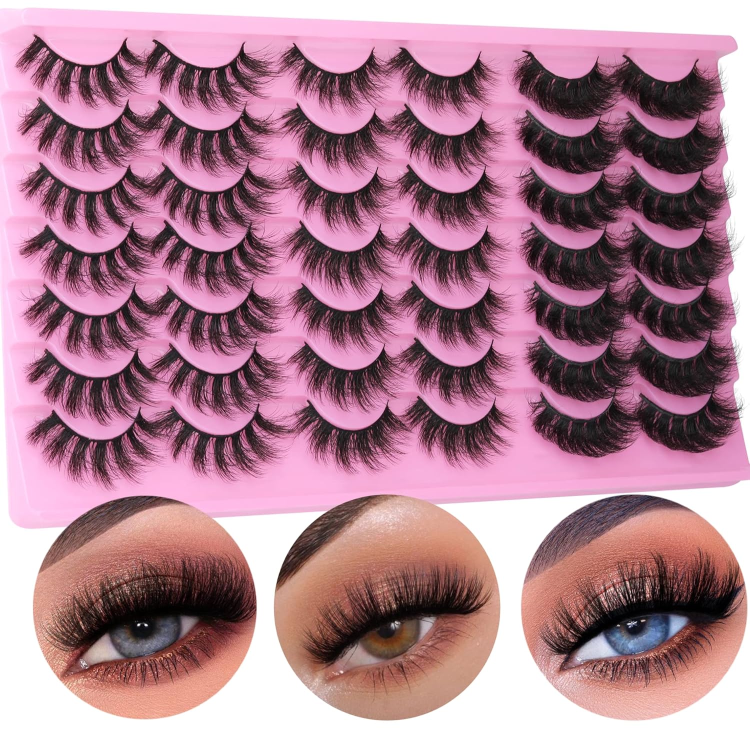 21 Pairs 3 Styles Mink Lashes:20 pairs 3 styles natural faux mink lashes, including natural, wispy, fluffy effect eye lashes. Meet your different makeup needs