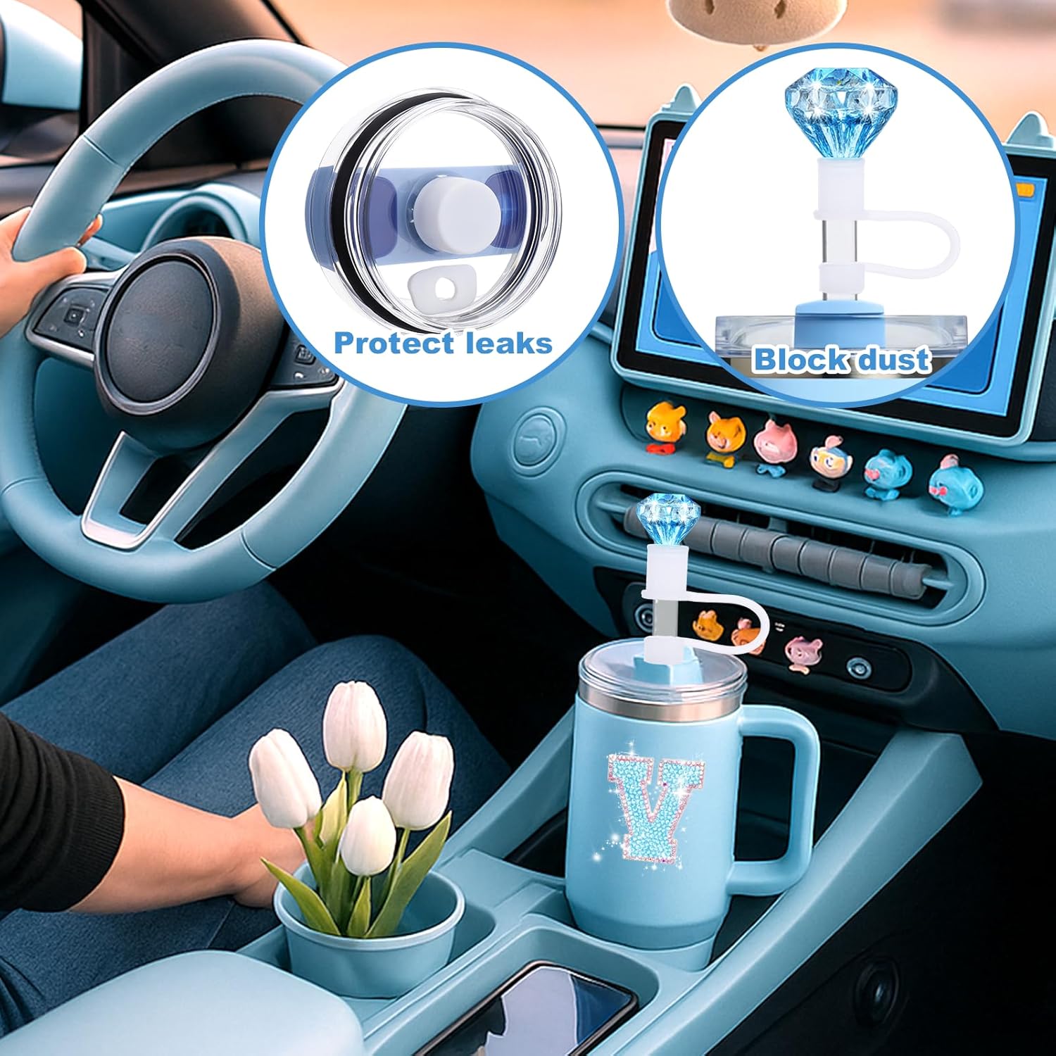 Practical & Convenient: Includes a round and square anti-leak stopper to prevent spills. The diamond straw cap keeps your drink safe from dust and contaminants.Cup boot combine decoration and protection against cracking cup bottom.This set of blue stanley cup accessories is easy to install and fits perfectly, waterproof, removable, and dishwasher-safe for hassle-free cleaning