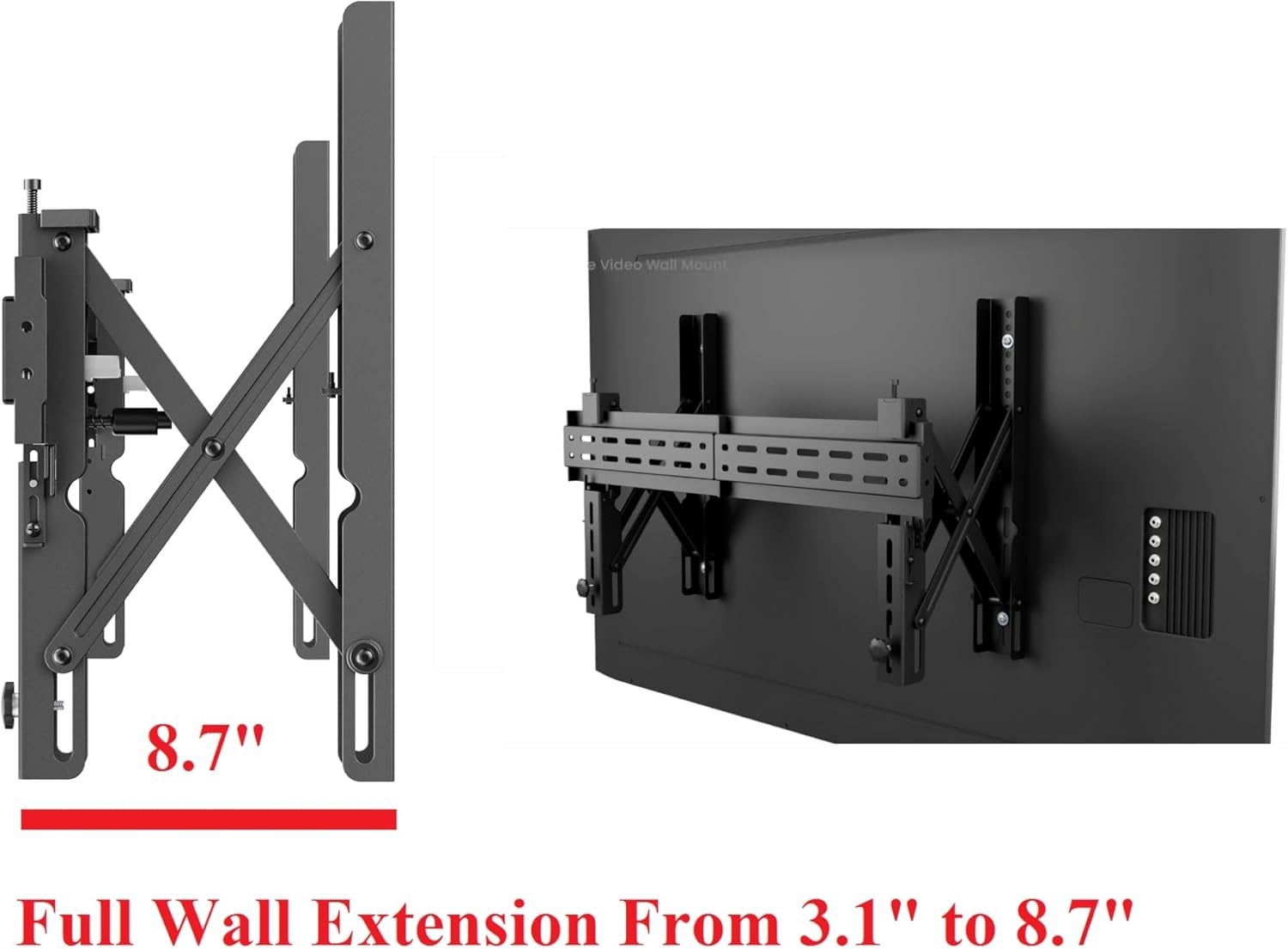 Mount Plus POP-48T Pop Out Video Wall Mount System for 37 to 70″ TVs | TV Menu Board | Max VESA 600×400 | Commercial Grade 154 Lbs | Anti-Theft Protection | Full Extension to 8.7″ (1 Pack)