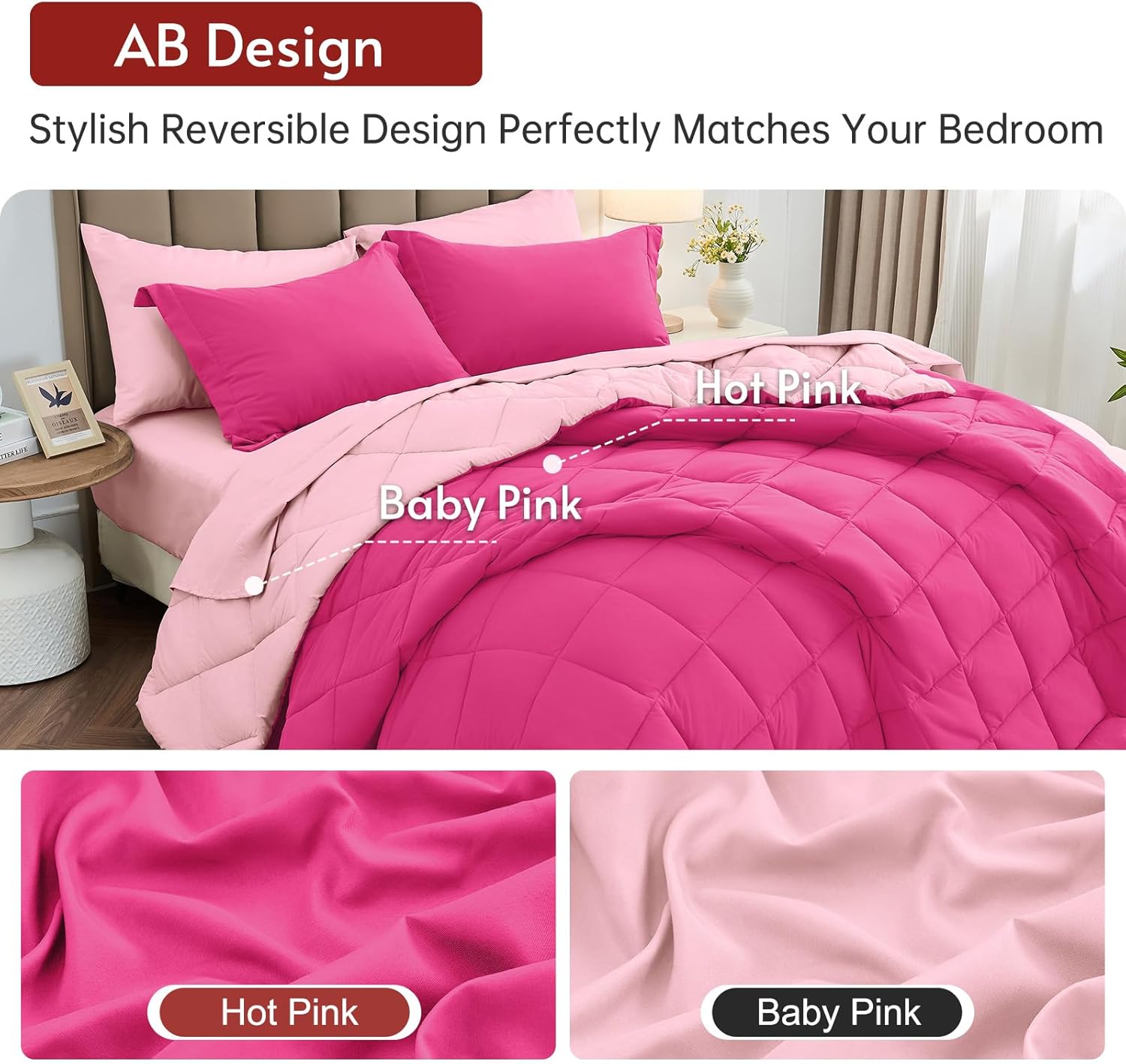 Unique Box Stitching Design: Add comfort, style, and sophistication to your bedroom with our reversible dual-tone and square stitching design. The box construction of this bedding set prevents fiber fill from shifting, ensuring your comforter remains cozy