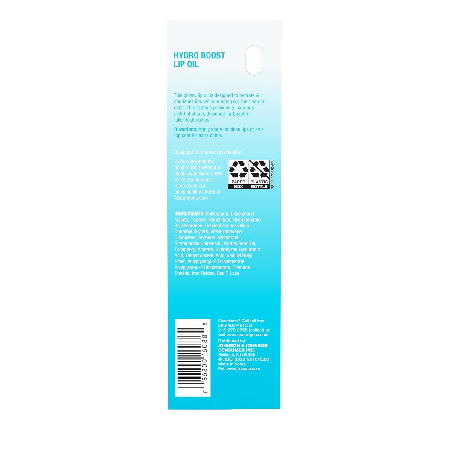 Designed to hydrate and nourish lips, Neutrogena’s Hydro Boost Lip Oil with Hyaluronic Acid in a flattering Light Pink shade. This tinted lip oil from Neutrogena, a dermatologist-recommended skincare brand, combines the shine of a lip gloss and leaves lips feeling smoother while designed to hydrate and enhance the look of lips, bringing out their natural color. The moisturizing lip gloss is formulated with purified hyaluronic acid, an essential hydrator found naturally in skin that binds to water and holds it within skin’s surface for more supple and smooth lips. Designed to give you beautiful, fuller-looking lips, the hydrating lip oil is formulated without parabens or mineral oil and provides a luxurious pop of color to enhance any day or night look. To use, apply the lip oil alone on clean lips or as a topcoat over lipstick or lip balm for extra lustrous shine as a part of your daily lip care and beauty routine.