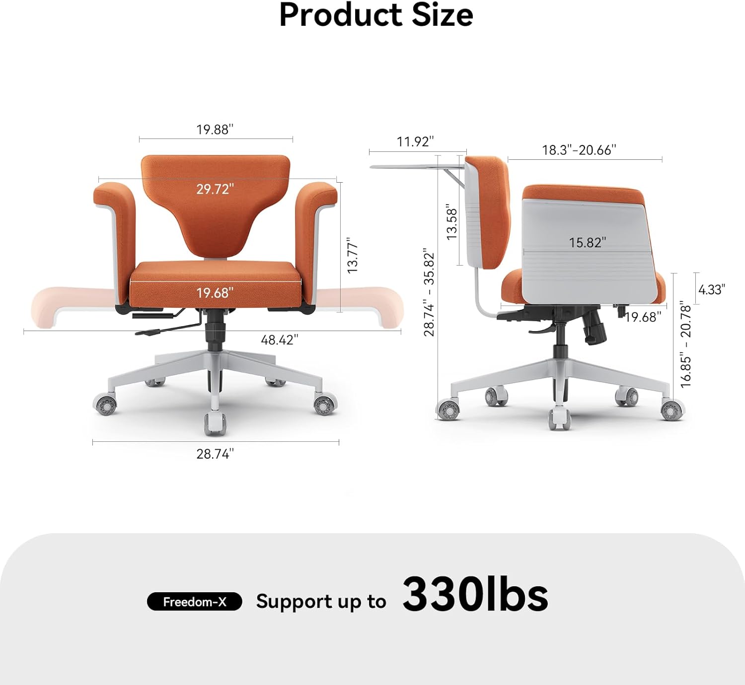 PREMIUM COMFORT & SAFETY BUILT TO LAST: Enjoy lasting quality with nano-coated 3-defense (water/stain/flame defends) fabric upholstery, 4.3″ thick high-resilience foam padding, and certified KGS 4-level gas lift (330 lbs weight capacity)