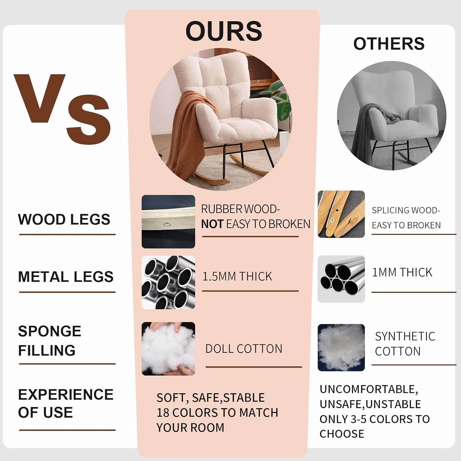 Soft & Thick Seat – The high back and thick seat cushion are filled with sponge, which is soft, comfortable, elastic and not easy to collapse. The whole recreational rocking chair is soft enough for you to enjoy yourself and relax your body after tired work