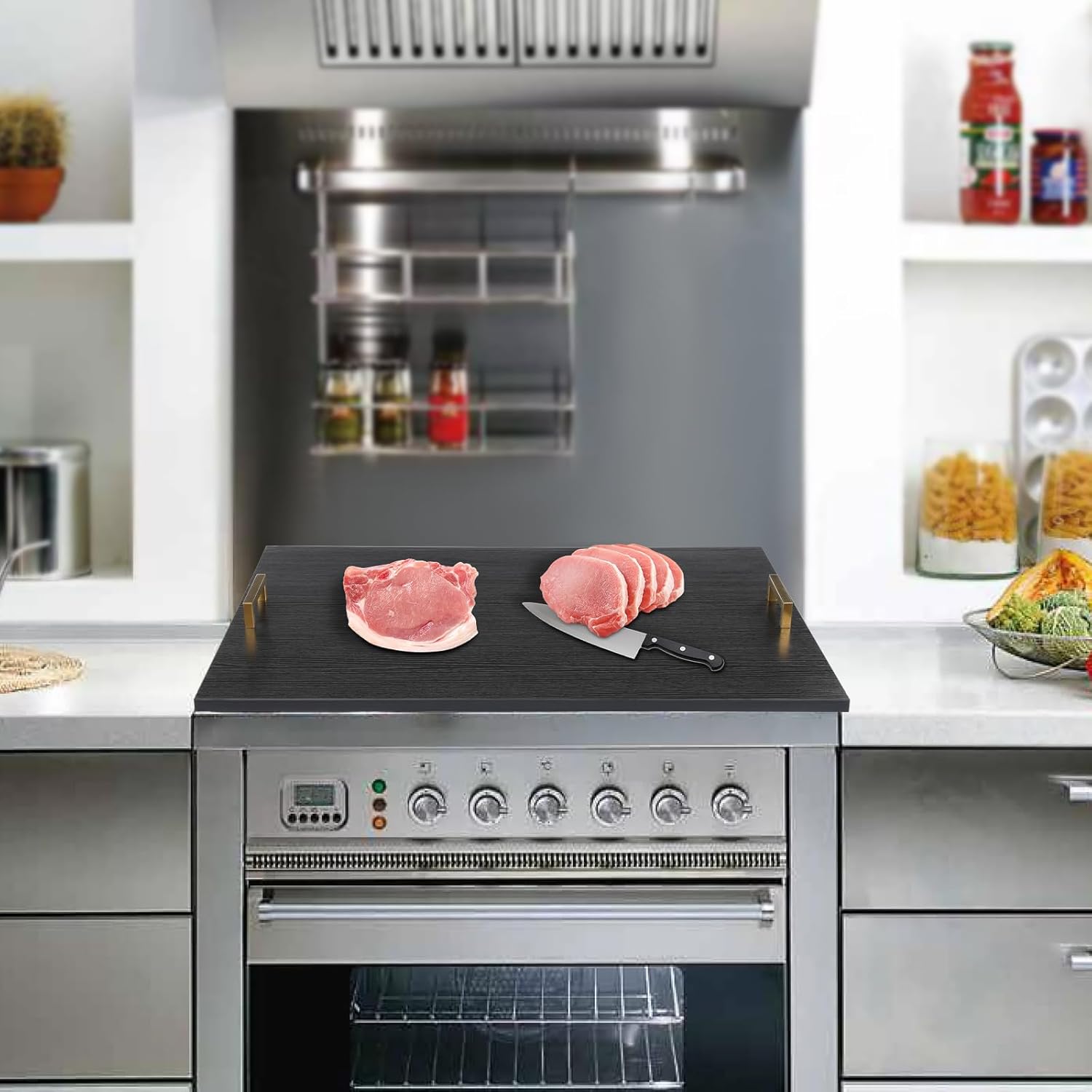 Made to Last: This stove top cover is made of acacia wood board treated with polishing, sanding, and oil-wiping processes, and has iron handles. It has high wear and corrosion resistance to ensure long-term beauty and practicality.