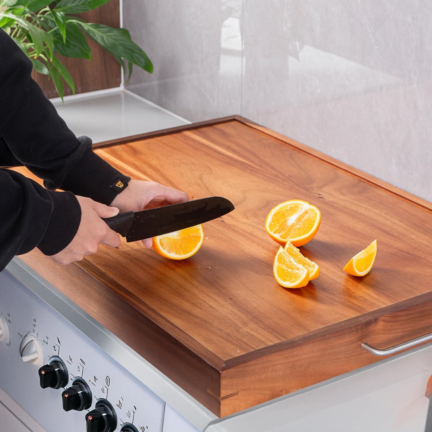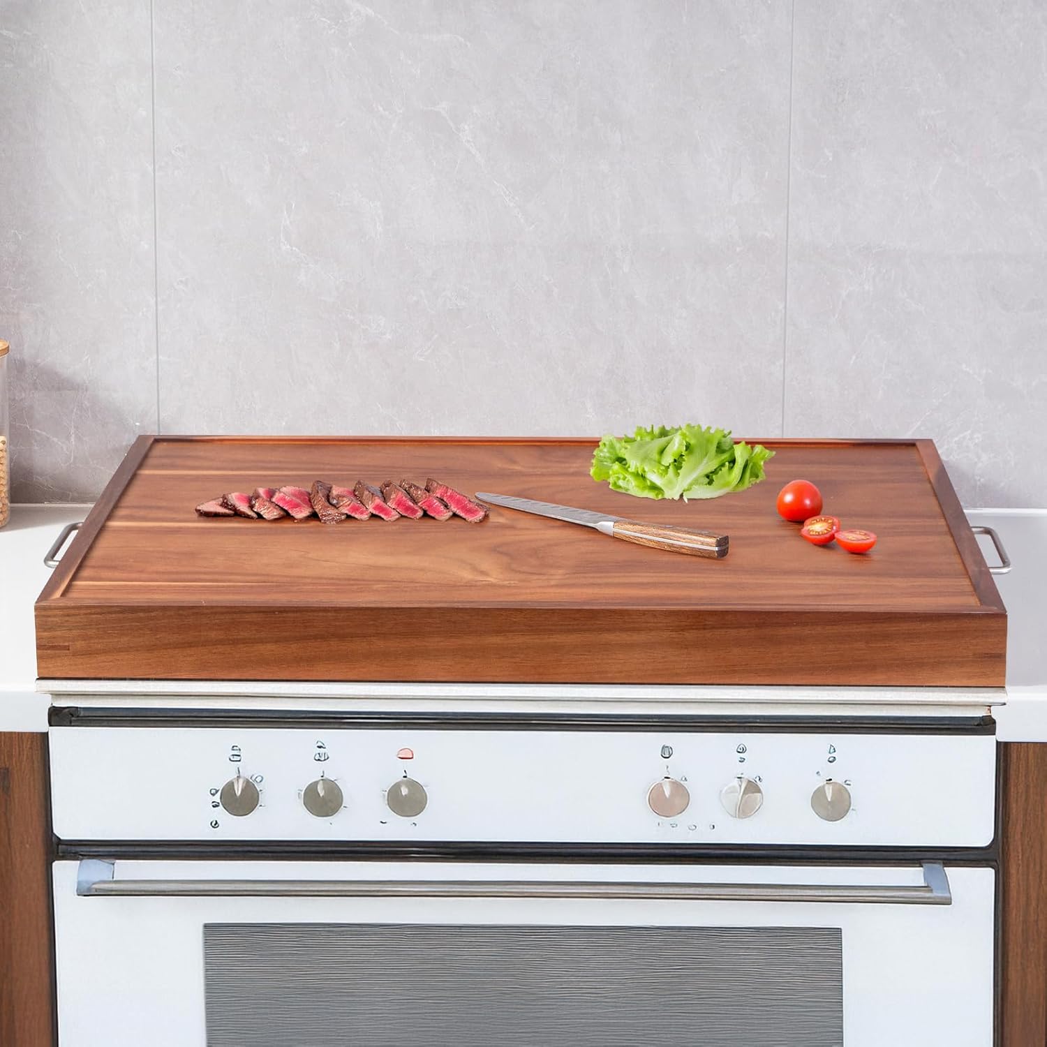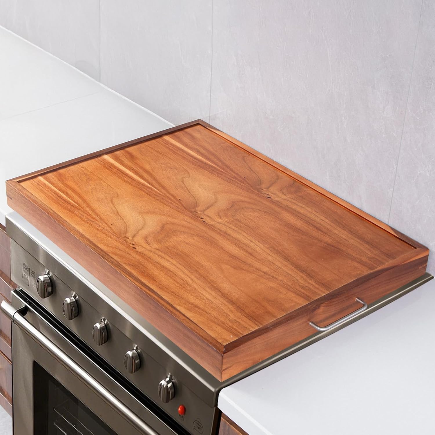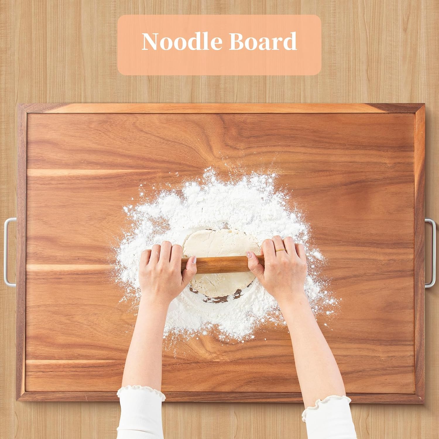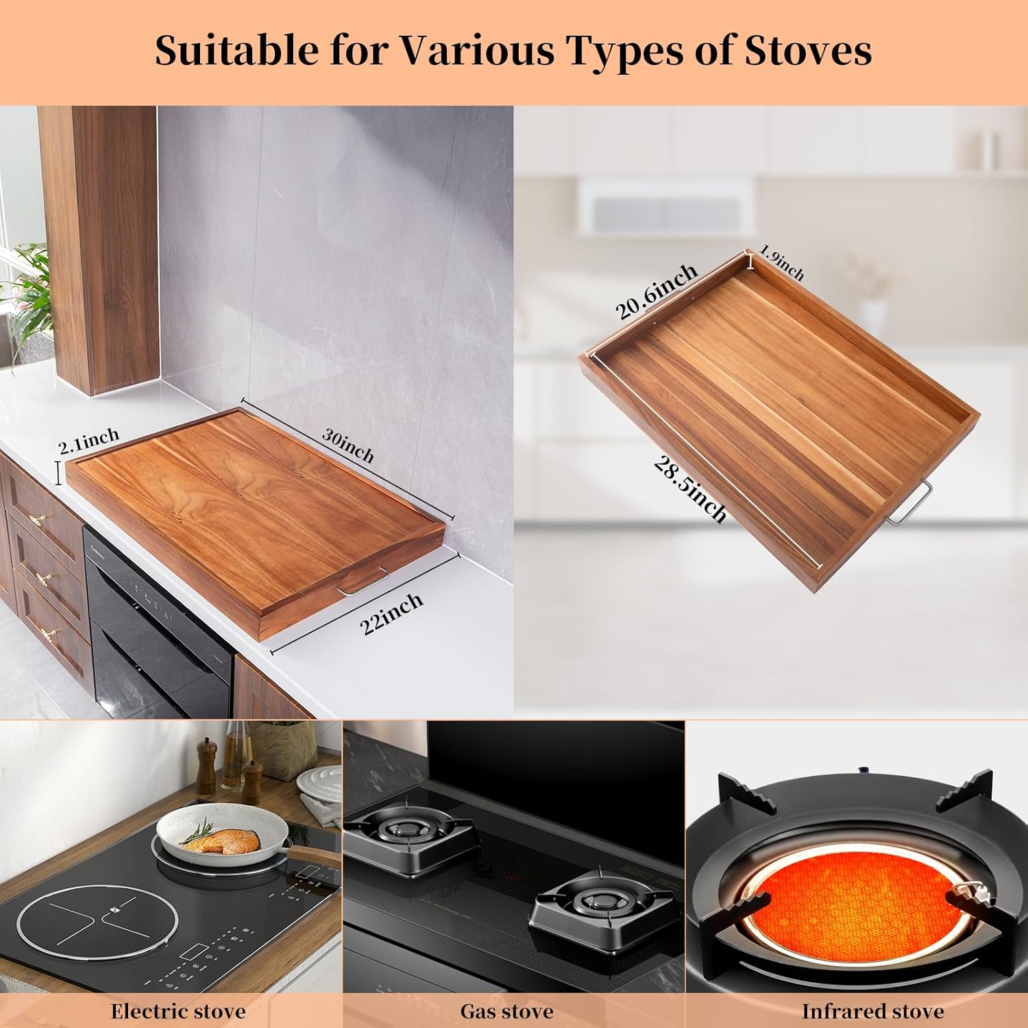 Noodle Board Stove Cover with Handles, Acacia Noodle Board Stove Top Covers for Gas Burners and Electric Stove, RV Stovetop Cover, Serving Tray for Kitchen Counter Space (30″ x 22″)