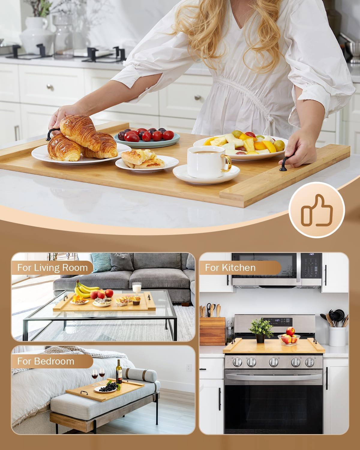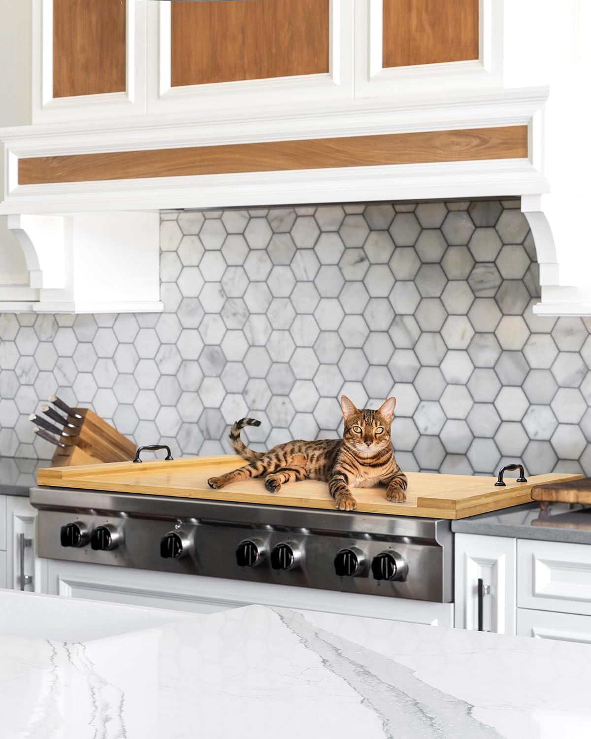 ✔DURABLE & HIGH-CLASS: The X-chef stove top cover is made from high-grade natural bamboo wood, featuring a tough texture and enduring durability. It perfectly fits various stove types, including glass, electric, and gas stoves, ensuring a secure and snug fit.