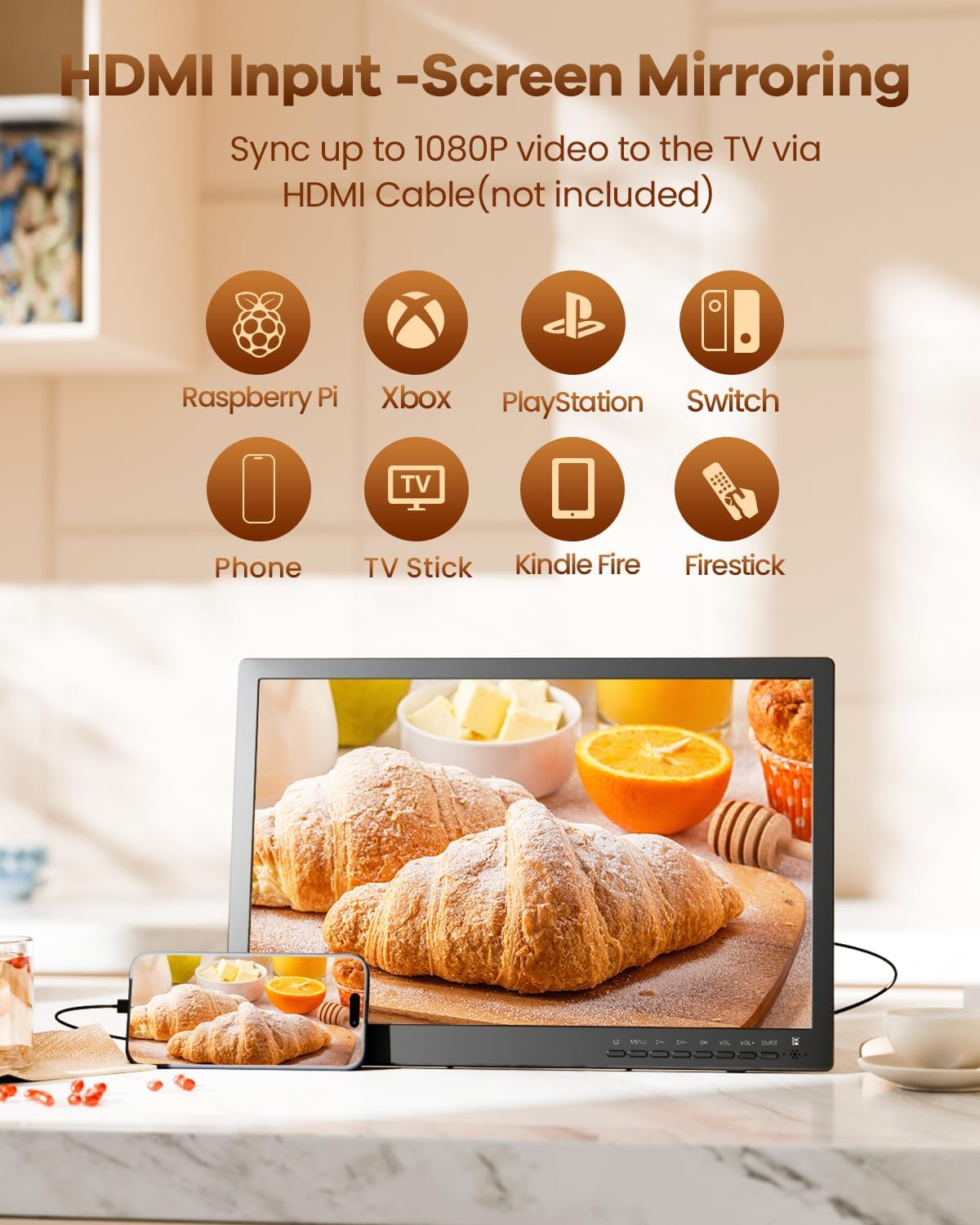 Compact and Portable: The lightweight design built-in 180° adjustable kickstand make it easy to move and watch your favorite shows anywhere