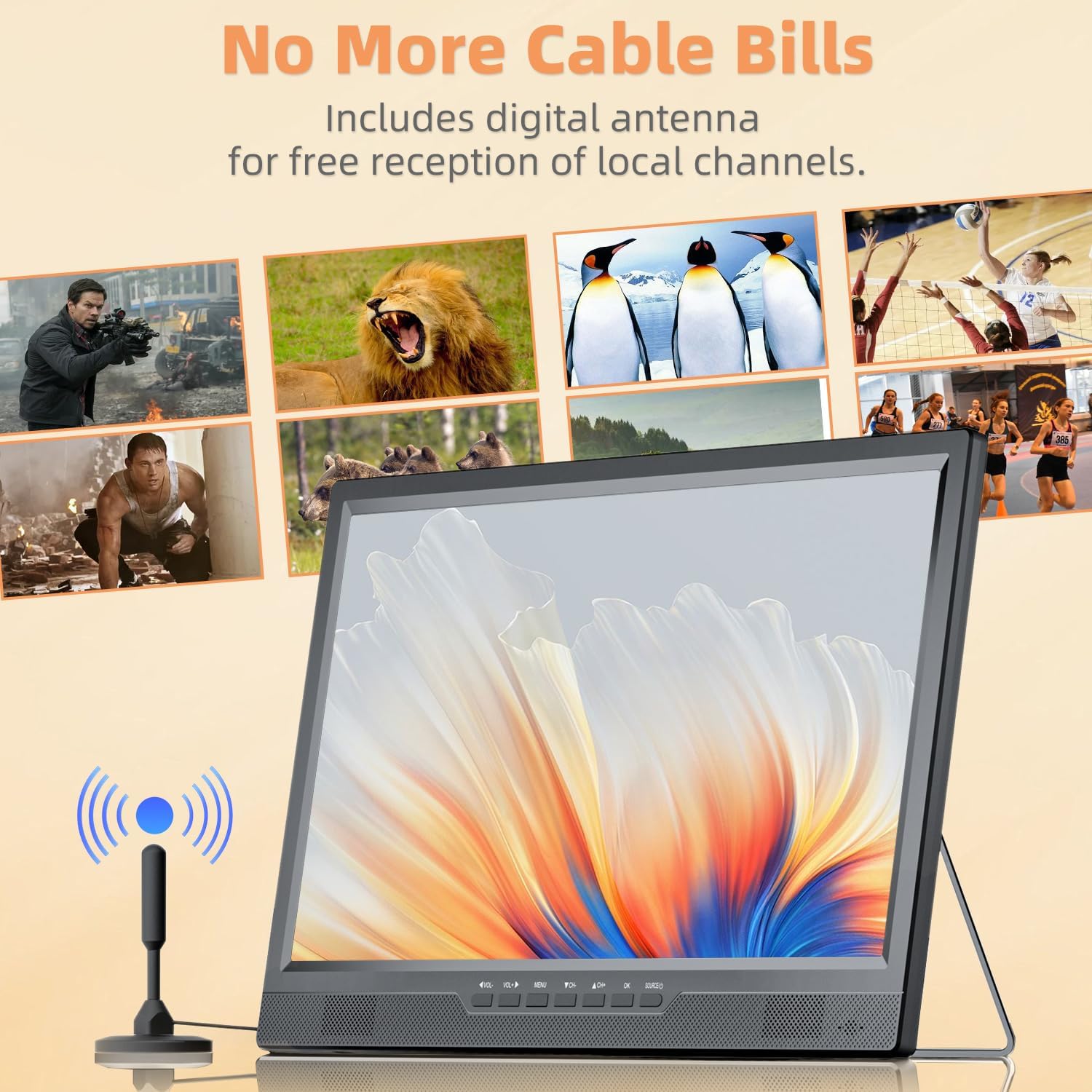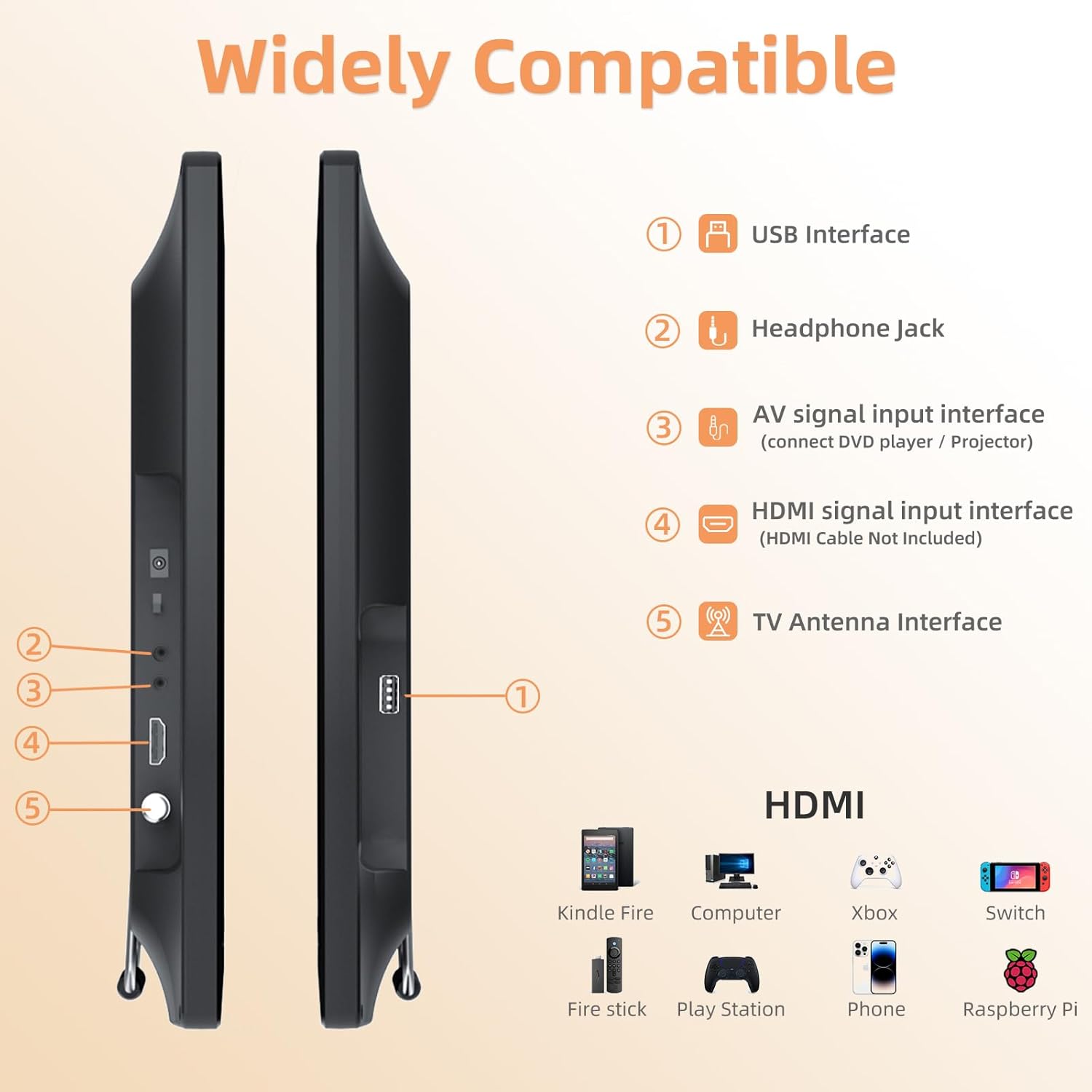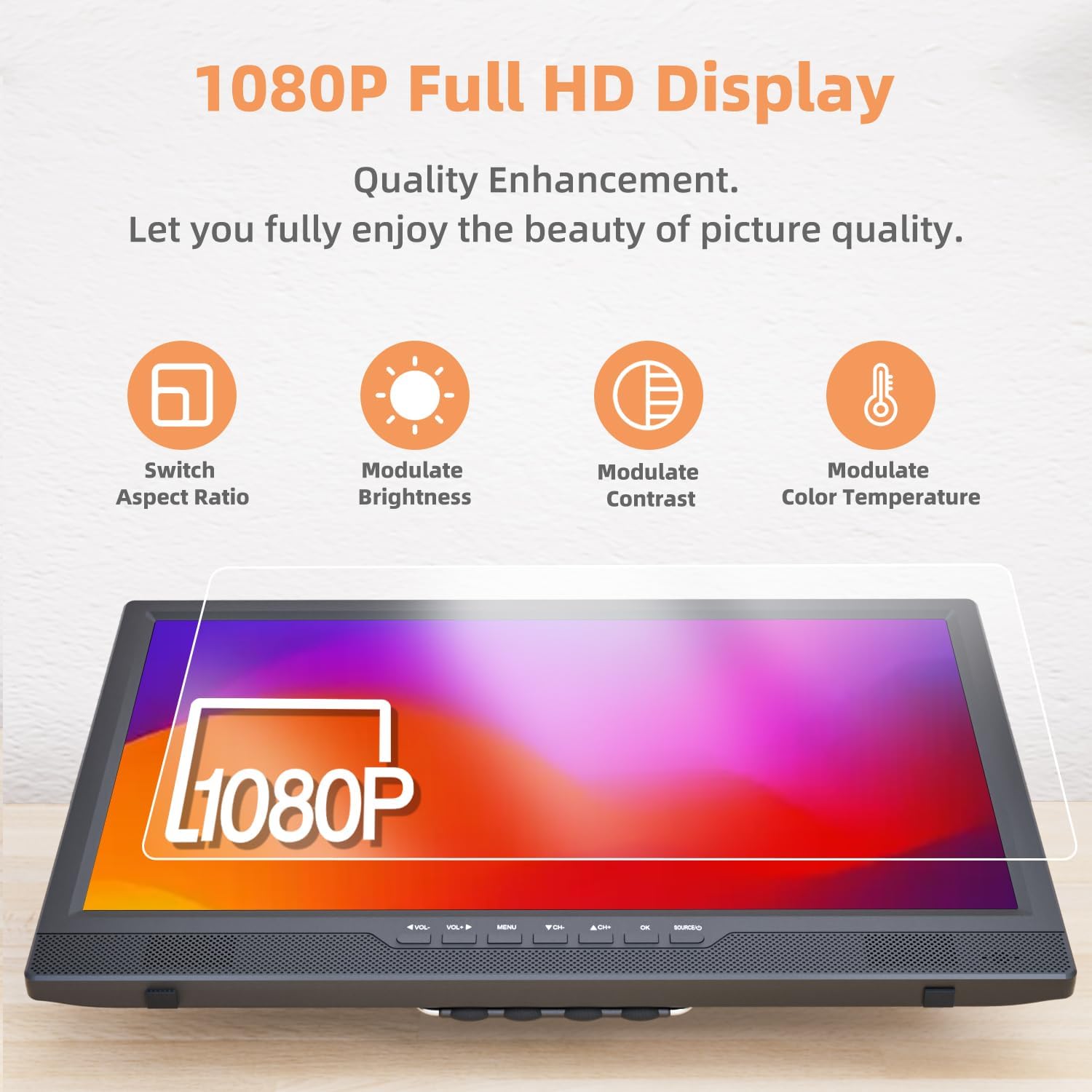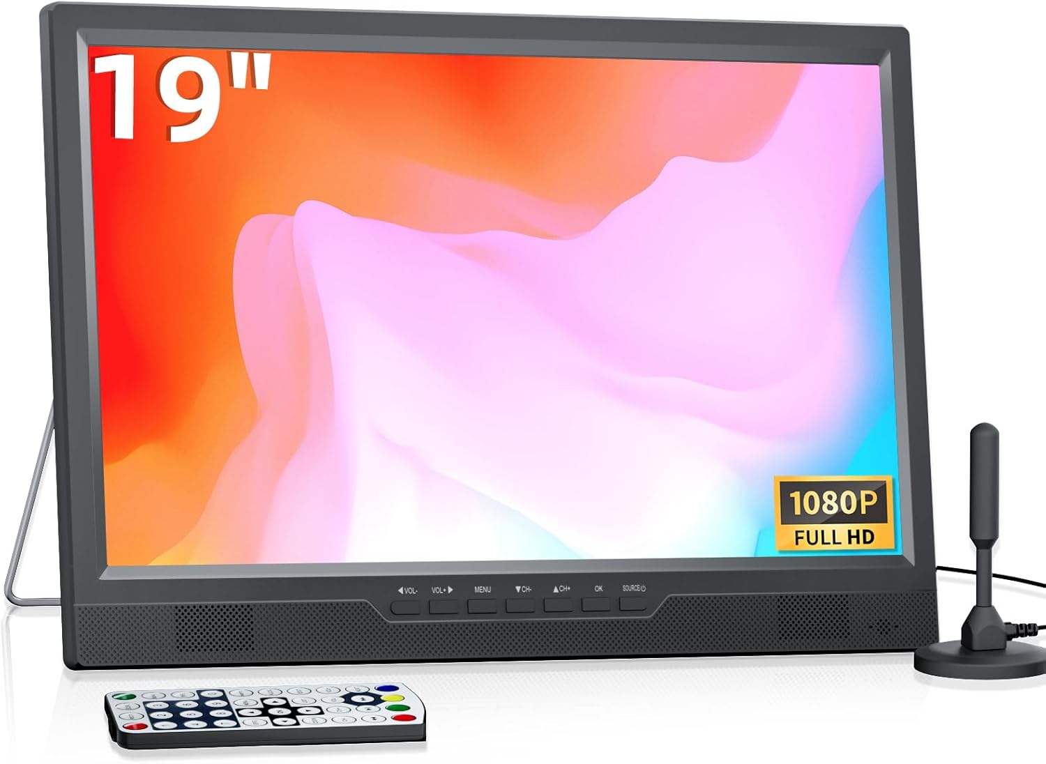 NORTHING 19.2 Inch Portable TV with Antenna, 1080P LED Small TV with HDMI Input/AV Input/USB Port, Portable Monitor with Built-in Stand, for Camping Kitchen Bedroom Patio RV Indoor Outdoor