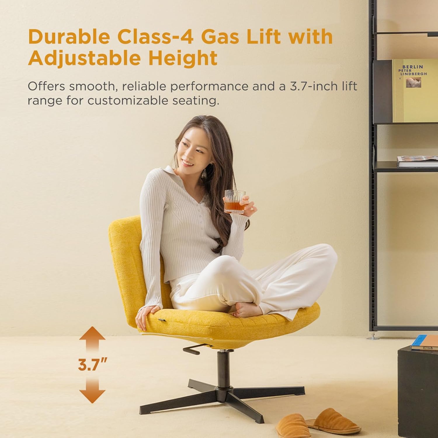 ✅【Adjustable & Versatile】The cross legged chair features a 360° swivel seat and a manual height adjustment lever. You can easily customize the armless chair’s height and enjoy a 21° recline with a lockable function. It supports up to 300 pounds, providing stable and comfortable support in any posture