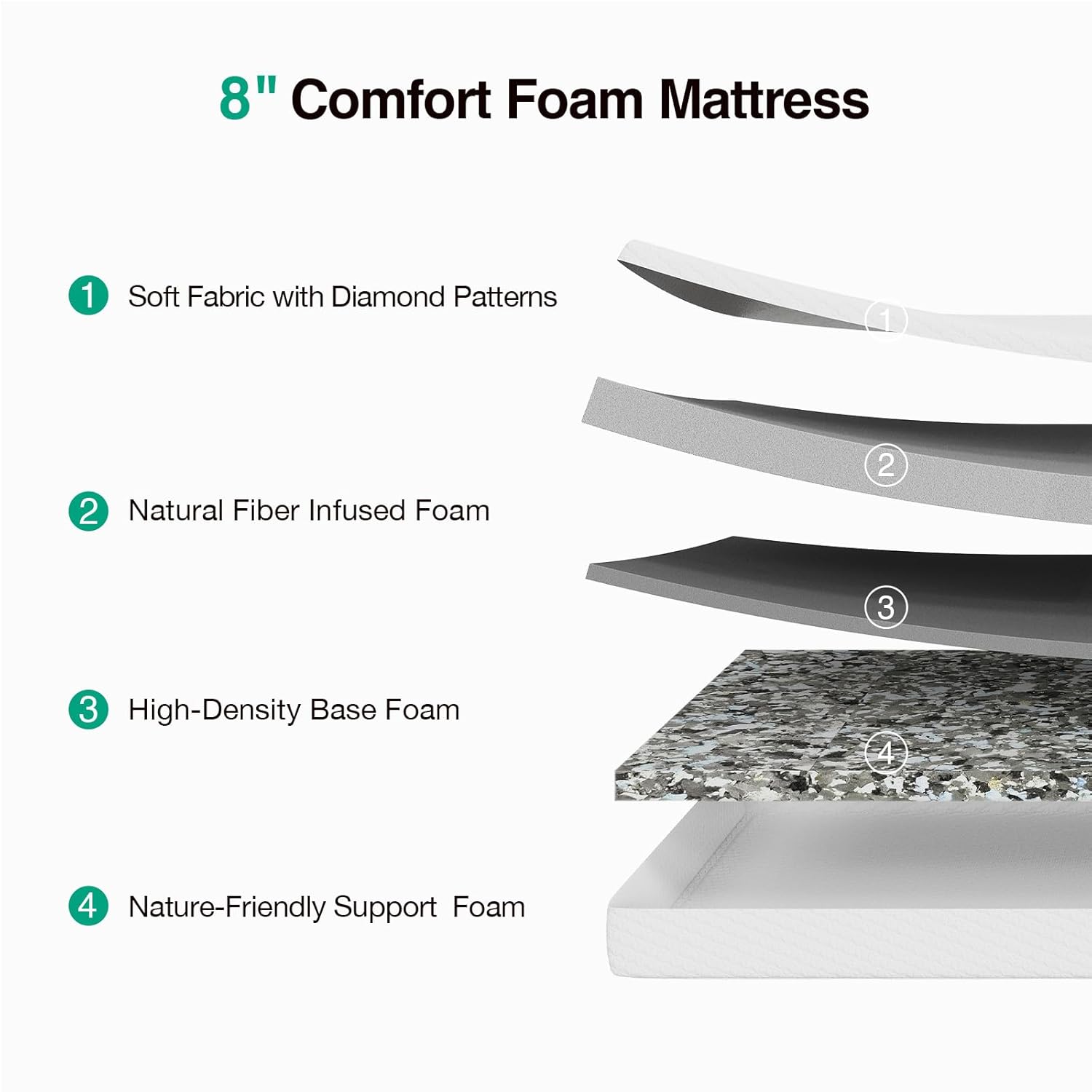 【Stress-Relieving System】 The mattress twin combines a 3-layer foam system for balanced comfort: a 2″ moisture-wicking comfort foam, a 3″ egg crate airflow foam, & 3″ high-density support base. These layers work together to enhance breathability and certain support,offers a cool & comfort sleep