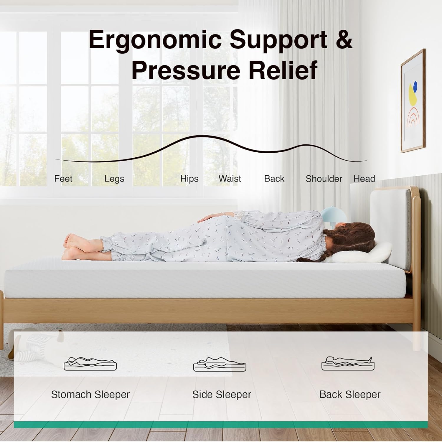 【Body Contouring & Edge Stability】 Engineered with balanced-firmness memory foam that conforms to body contours, this twin memory foam mattress combines pressure-relieving layers and a high-density core for spinal alignment. Reinforced edges prevent sagging, while motion-dampening design ensures undisturbed sleep