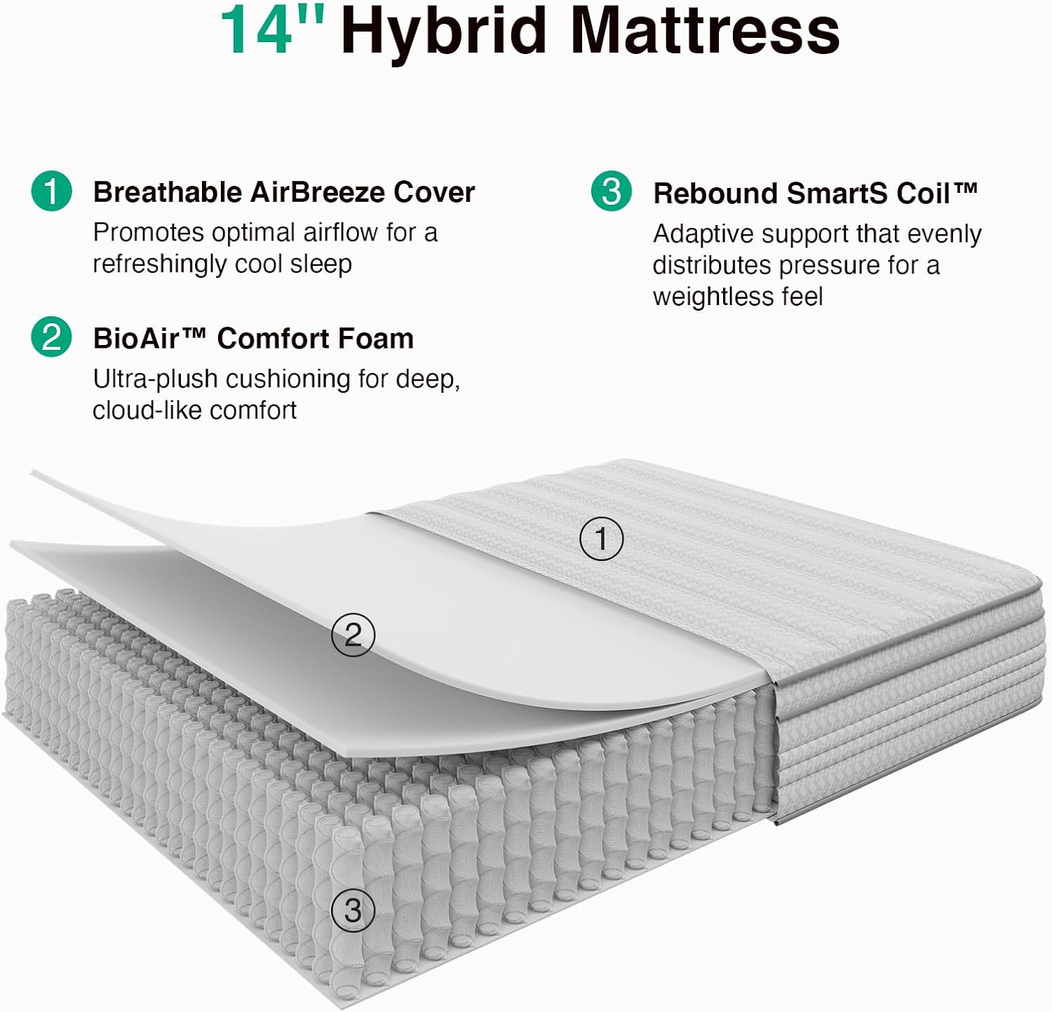 Novilla Full Size Mattress, 14 Inch Full Mattresses in a Box with Smarts™ Pocket Coil for Pressure Relief, Medium Plush Foam and Spring Hybrid Colchones with CertiPUR-US Certified