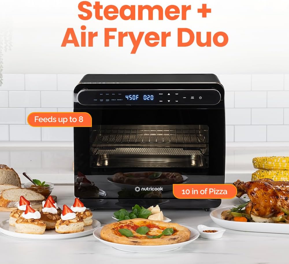 Nutricook Steami 24L Steam Air Fryer Oven – 11-in-1 Convection Countertop Multi-Cooker with Real Steam Tech, Air Fry, Bake, Roast, Dehydrate, Sterilize, Stainless Steel Interior – 1600W