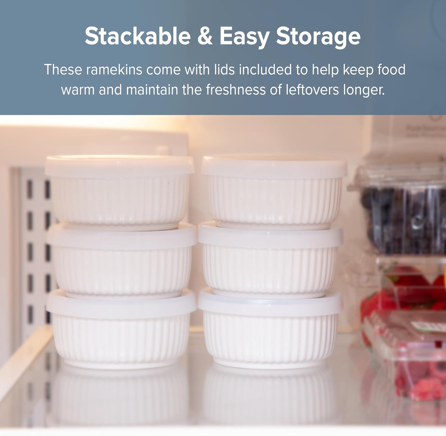 KEEP FOOD FRESH – These ramekins come with FDA food-grade silicone lids included to help keep food warm and maintain the freshness of leftovers longer. Great for storing food or bringing it on the go!