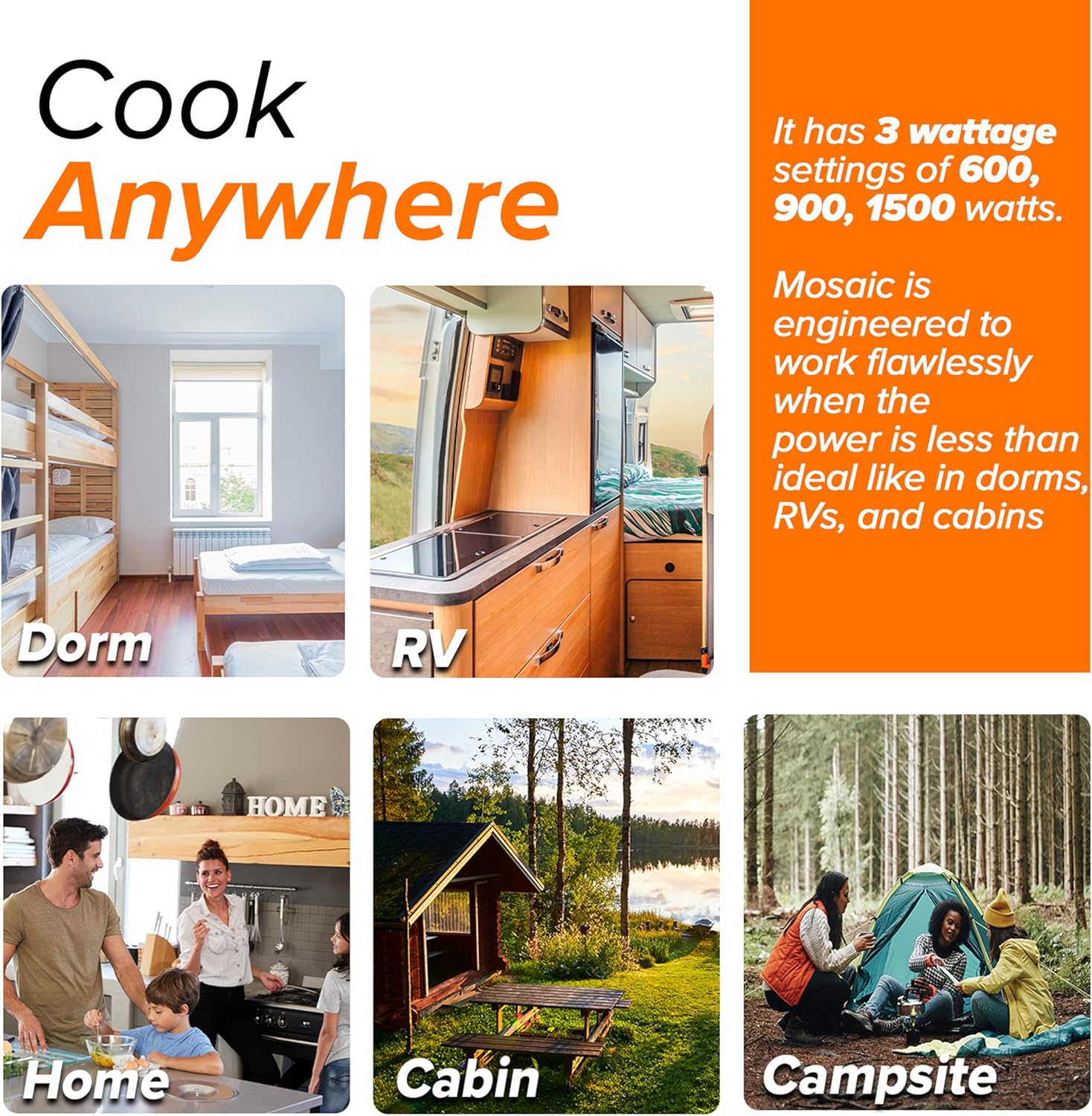 PERFECT FOR DORMS & RV’S – Mosaic is light-weight and portable. It performs flawlessly in RV’s, dorms, campsites, and smaller apartments. Its 3 wattage settings of 600, 900 & 1500 watts are designed to work well anywhere even when the power is limited.