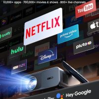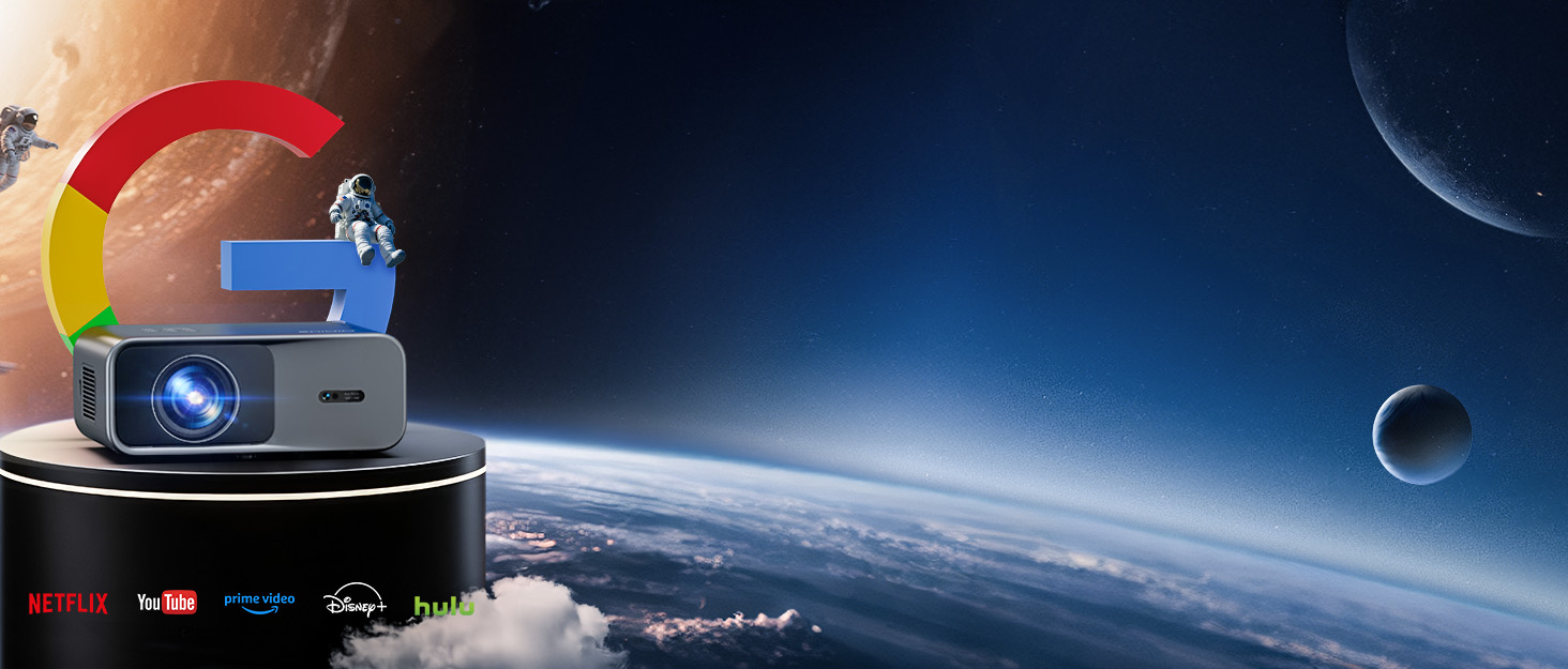 [All-in-One Google TV Built-In] G1 Smart projector comes fully integrated Google TV—no website version, no stripped-down system. Access YouTube, Disney+, Prime Video, Plex, HBO Max, Peacock, Apple TV, etc., and 800+ live channels. No need to switch sources or jump between apps—everything you stream, all on one G1 screen.