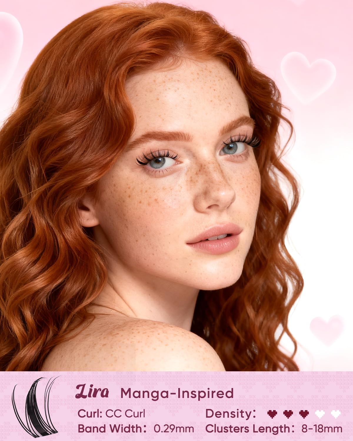 FALL IN OKAYLOVE: LIRA OKAYLOVE DIY eyelash clusters includes 140 clusters (10–18mm). From clean, everyday natural lash clusters to expressive looks inspired by manga lashes or fairy lash clusters, achieving a salon-quality finish at home is simple