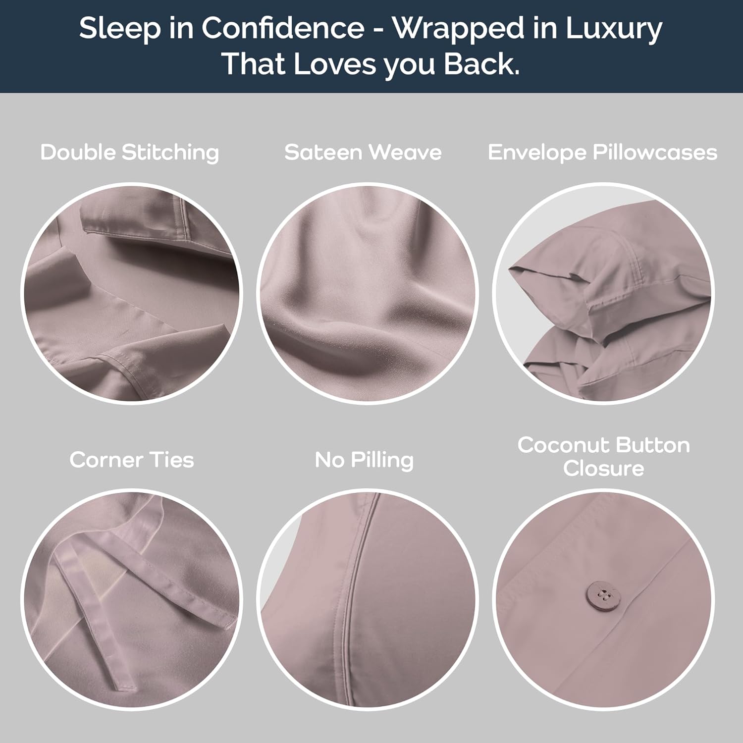 Olive + Crate Tencel Eucalyptus Cooling Duvet Cover Set – Hypoallergenic, Lyocell Tencel Duvet Cover – Soft, Temperature Regulating with Hidden Button Closure & Corner Ties – Queen Size [Dusk]
