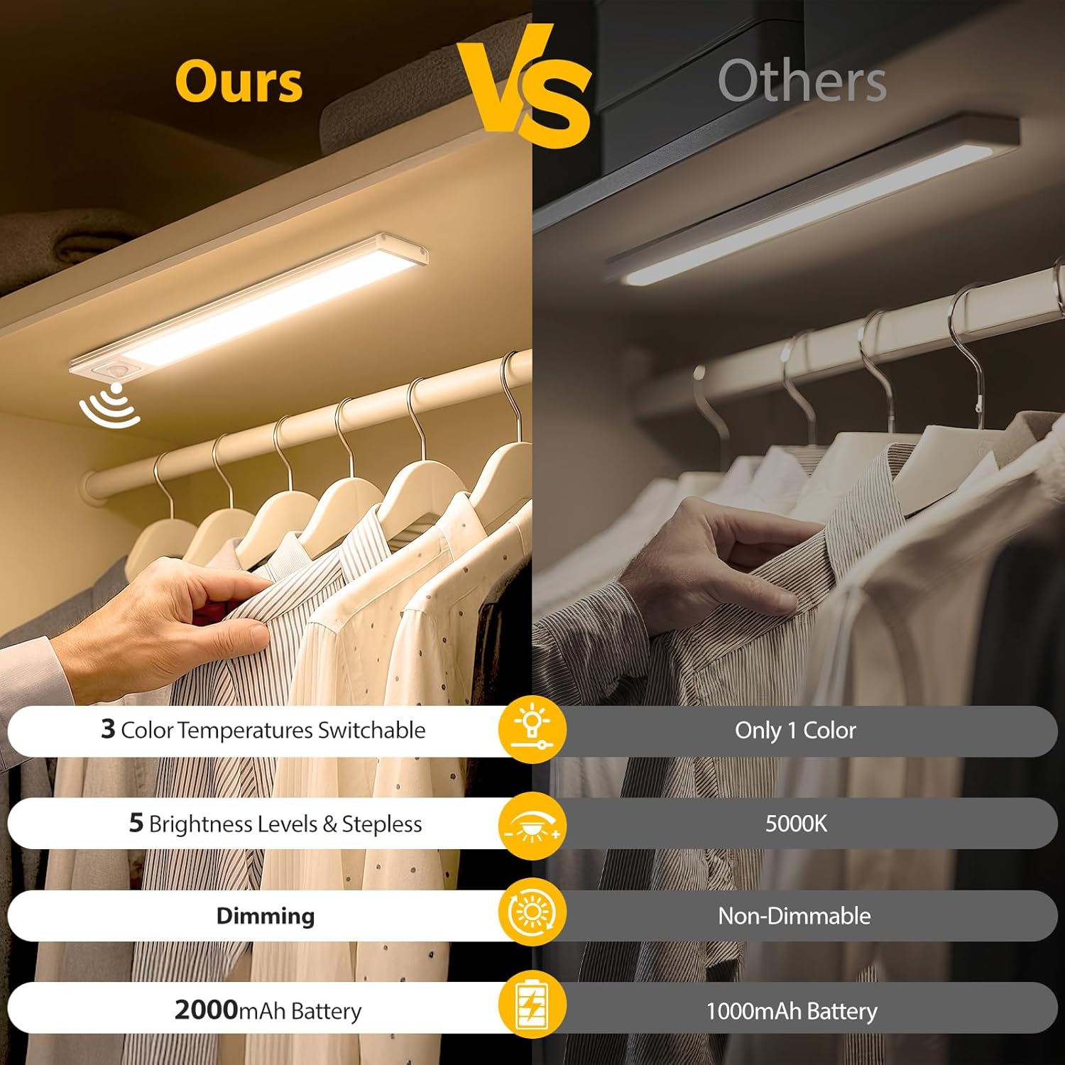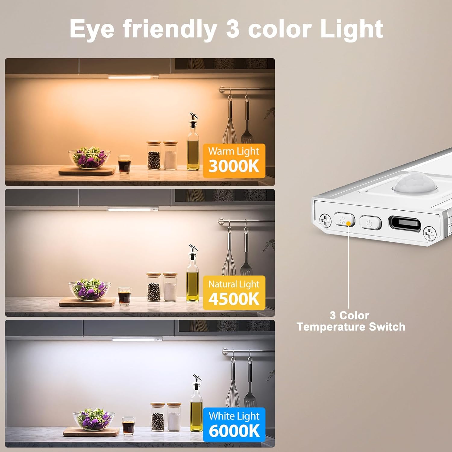 Onforu 9.8″ Under Cabinet Lighting, 2000mAh USB-C Rechargeable, Motion Sensor Under Cabinet Lights with 3 Color & Dimmable, Magnetic Under Counter Lights for Kitchen, Closet, 2 Pack