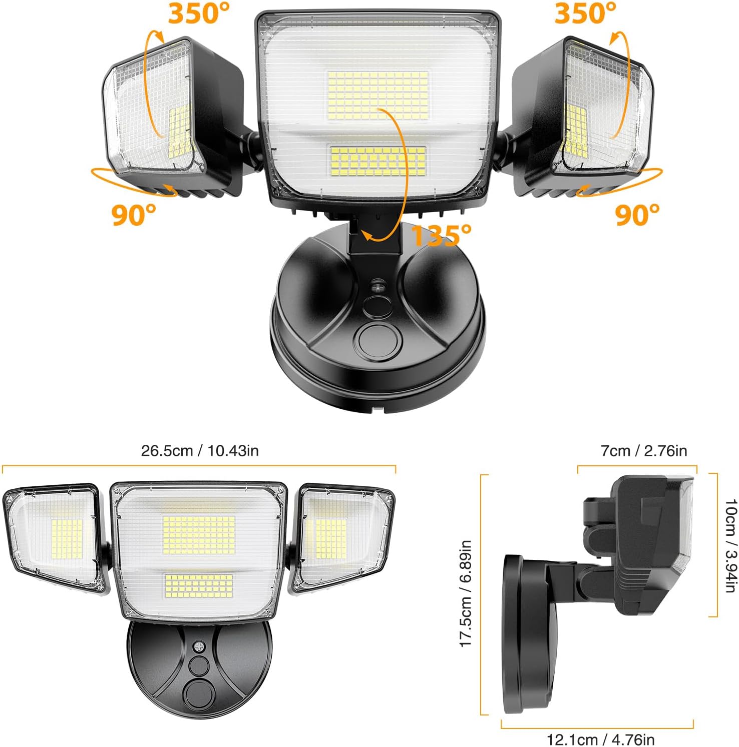 Efficient Cooling & Long Lifespan: This outdoor security light features a die-cast aluminum housing for efficient heat dissipation and extended lifespan, and is equipped with a professional matte lens. This design provides superior, soft, glare-free illumination with a lifespan of up to 50,000 hours