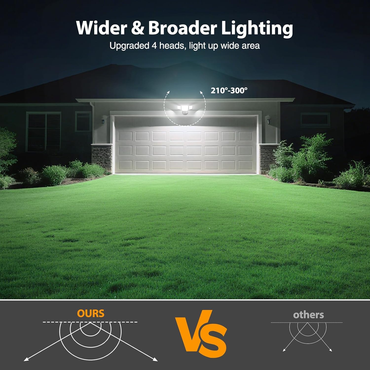 Upgraded 4 Light Head & Wider Illumination: 4 Light heads and a unique quad-beam design provide even and widespread illumination. Lighting heads can be adjusted to your desired angles according to different scene needs, resulting in a wider illumination area and a beam angle up to 300°