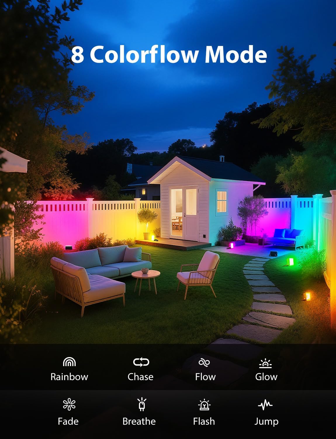 Vibrant Color & Dynamic Effects: Go beyond static light! Choose from 16 million colors or warm white (2700K). Enjoy 4 Dynamic Modes and 8 unique Colorflow Modes for mesmerizing rainbows, fades, jumps, and smooth transitions – ideal for parties, holidays, and creating ambiance. Wired 6 Pack in 1 Cord 60W total, decorative lighting.